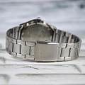 Часы станут незаменимым помощником на любой случай жизни. Сдержанный дизайн, выдержанный в классическом характере. Круглый корпус выполнен из нержавеющей стали. Браслет со складной застежкой будет прочно сидеть на запястье. На циферблате расположены отчетливые штрихи серебристого цвета. Сапфировое стекло надежно защищает часы от царапин. Аналоговый способ отображения времени. Кварцевый тип механизма. Батарейка служит 3 года. Водонепроницаемость составляет 5 Бар.