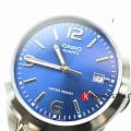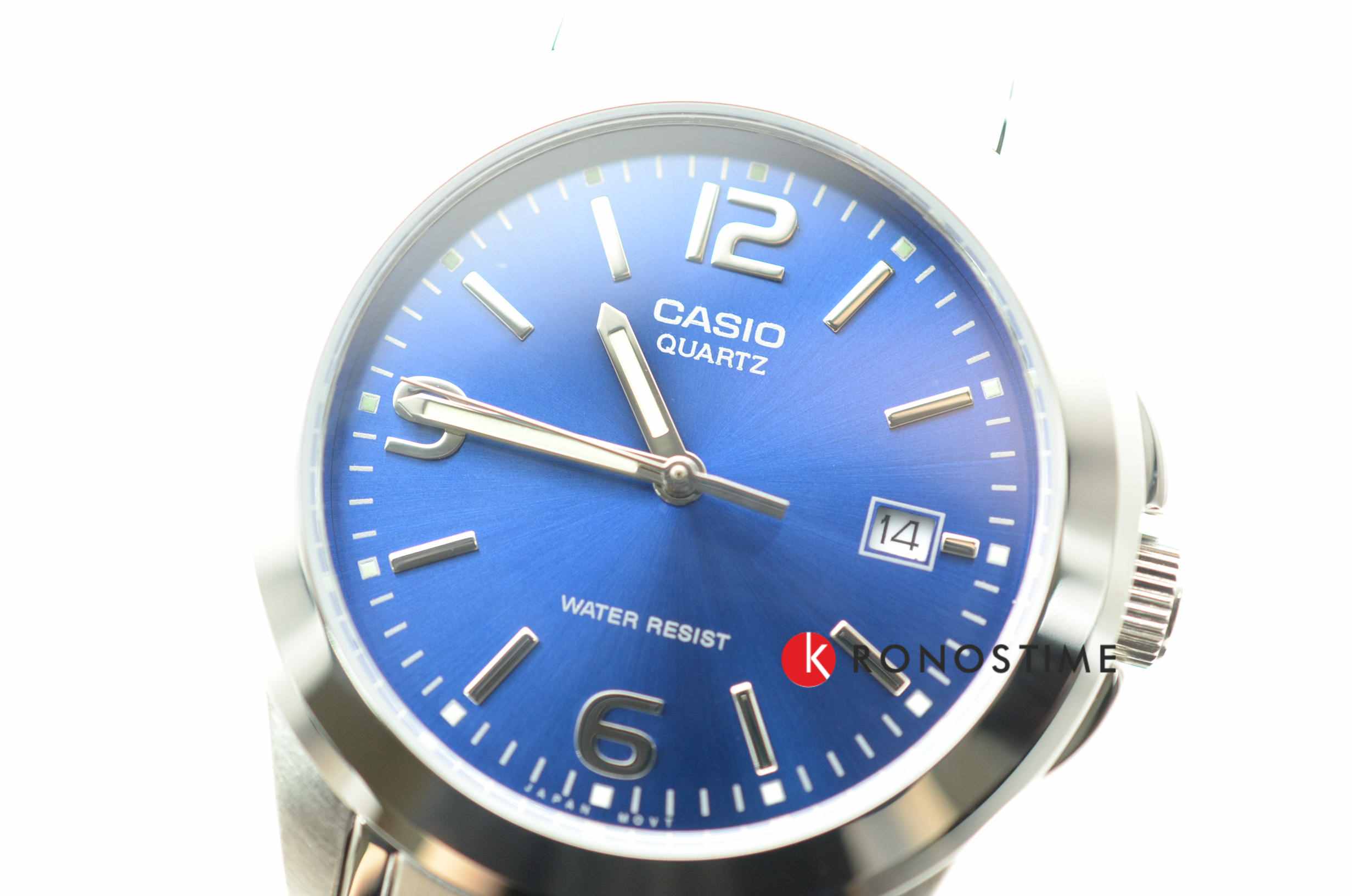 Данная модель от Casio придется по вкусу ценителям высокого качества, комфорта и сдержанного дизайна. Корпус выполнен из латуни. Стальной браслет прочно обхватывает запястье и закрепляется с помощью раскладывающейся застежки. Синий циферблат традиционной формы обрамляет аккуратный безельБезельВнешний ободок, закрепляющий стекло. В спортивных часах так называется поворотное кольцо с делениями на циферблате, выполняет роль таймера – замеряет отрезки времени на шкале. Неподвижный безель – элемент декора. Однонаправленно вращающийся безель на дайверских часах позволяет фиксировать моменты погружения и выныривания на поверхность.. Есть небольшое окошечко с календарем. Крупные отчетливые временные отметки сделаны в виде штрихов и арабских цифр. Подсветка NeobriteПодсветка NeobriteИспользование светонакопительных составов на основе сульфида цинка или алюмината стронция, яркий свет можно наблюдать на протяжении 6-10 часов после «зарядки» часов около источника света. обеспечивает видимость показателей в темное время суток. Тип механизма - кварцевый. Вес составляет 92 грамма.