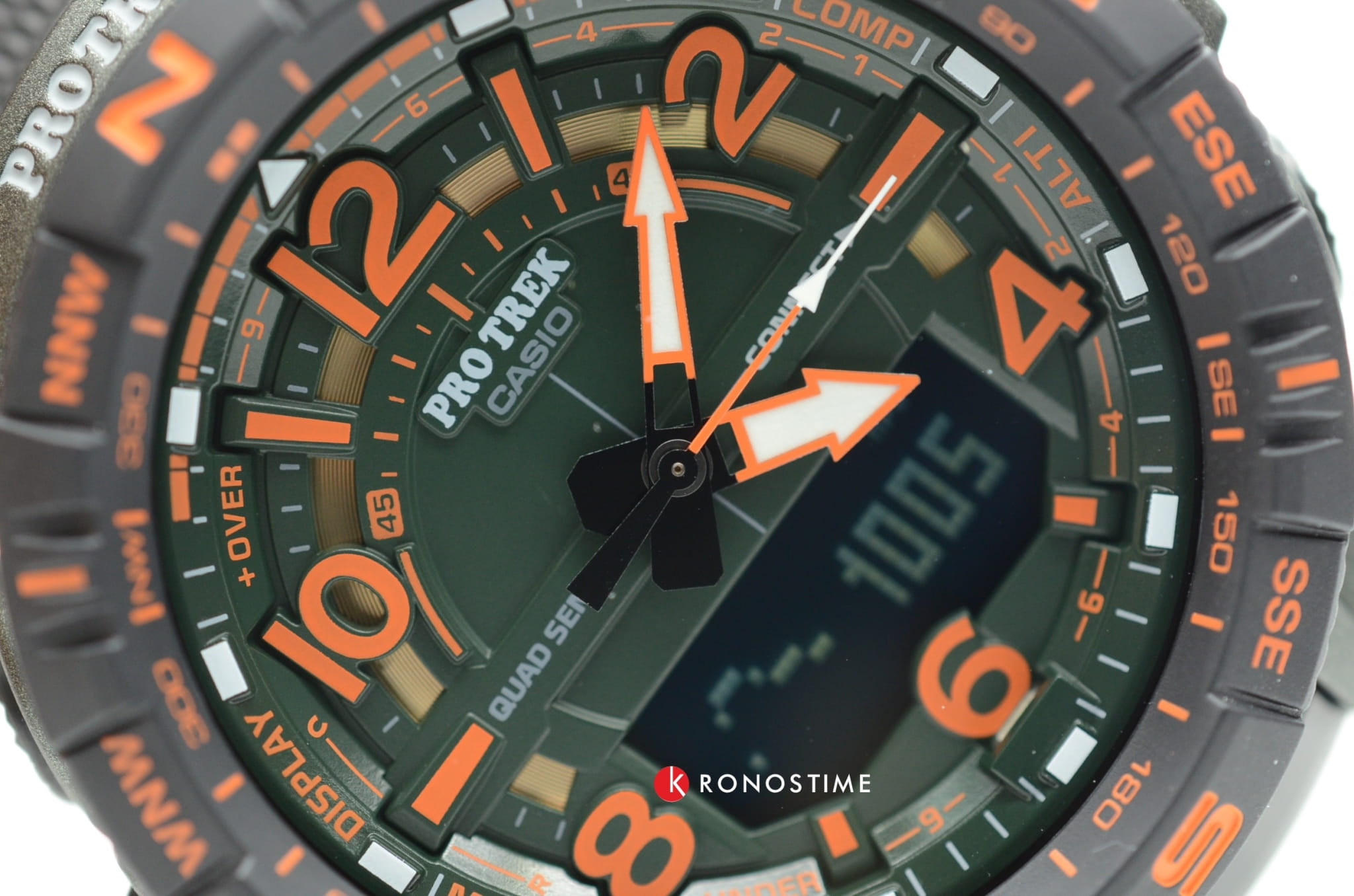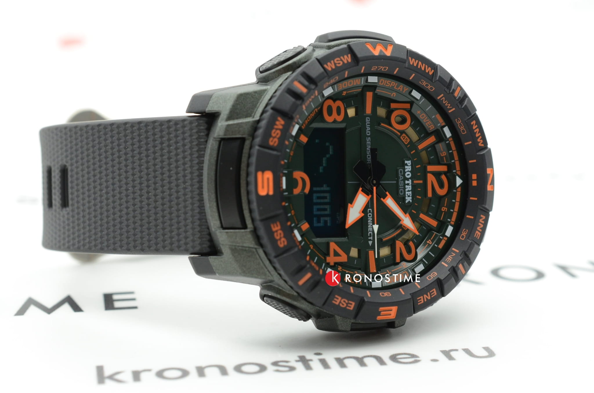 -навигация. Японский кварцевый механизм получает питание от батарейки, рассчитанной на 2-летний срок службы. Устойчивость к температуре ниже -10°C. Степень водостойкости WR 100. Ударопрочный корпусУдаропрочный корпусМеханизм заключён в корпус, выполненный из современных материалов, устойчивых к ударам, механическим повреждениям и падению с высоты: инновационный пластик, карбон, нержавеющая сталь, титан.. Минеральное стекло. Электролюминесцентная подсветкаЭлектролюминесцентная подсветкаЭлектролюминесцентная панель устанавливается под ЖК-экраном часов, при нажатии кнопки электричество преобразуется в свет за счёт подачи напряжения на атомы фосфора, такой тип подсветки позволяет освещать весь циферблат.. Два ремешка в комплекте – полимерный с 3D-текстурой и тканевый. Габариты: 57,5 x 50,8 x 15,8 мм.
