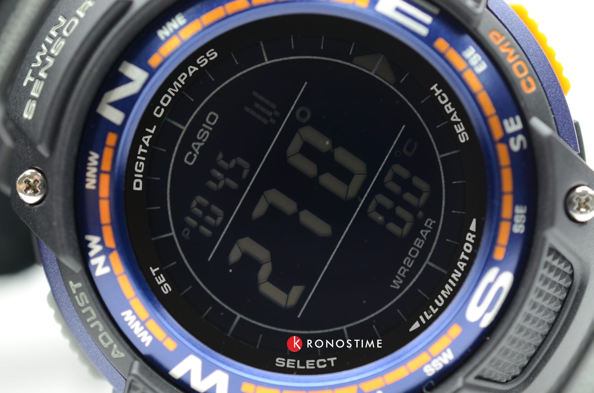 Корпус и браслет многофункциональных и стильных часов от Casio выполнены из высокопрочных полимерных материалов. Есть функции для определения погоды. Часы способны выдержать температуру даже ниже, чем -10 °C. Секундомер измеряет прошедшее время с точностью в 1/100 секунды. Быть максимально пунктуальными помогут 5 независимых будильников. Встроен цифровой компас. Электролюминесцентная подсветкаЭлектролюминесцентная подсветкаЭлектролюминесцентная панель устанавливается под ЖК-экраном часов, при нажатии кнопки электричество преобразуется в свет за счёт подачи напряжения на атомы фосфора, такой тип подсветки позволяет освещать весь циферблат. обеспечивает видимость информации в темноте. Высокая водонепроницаемость в 200 WR.