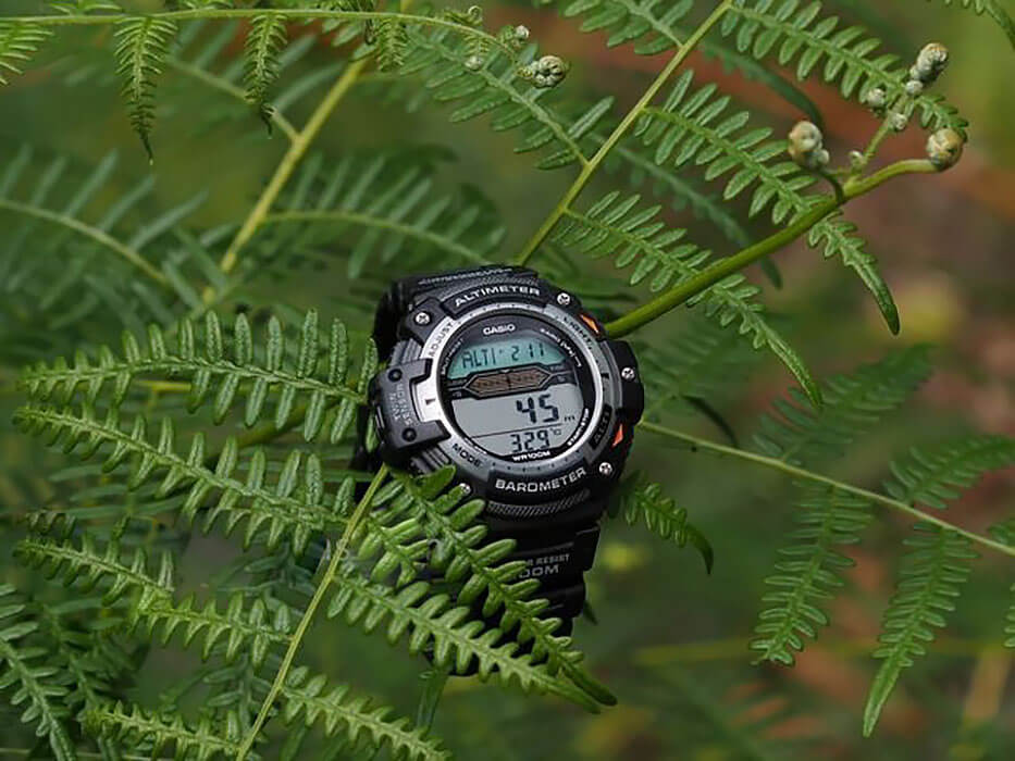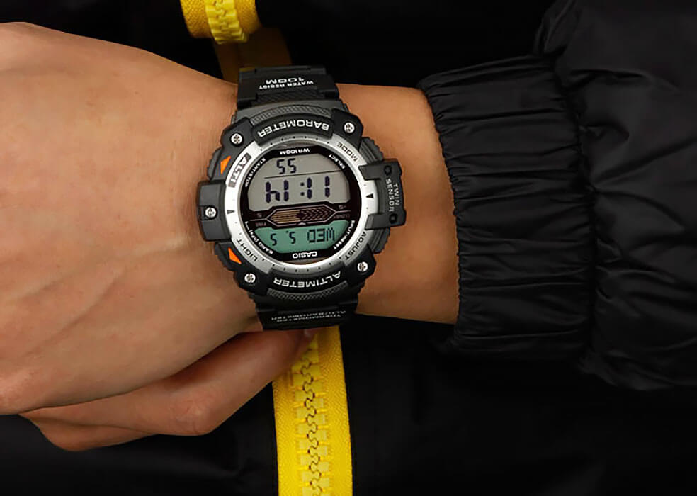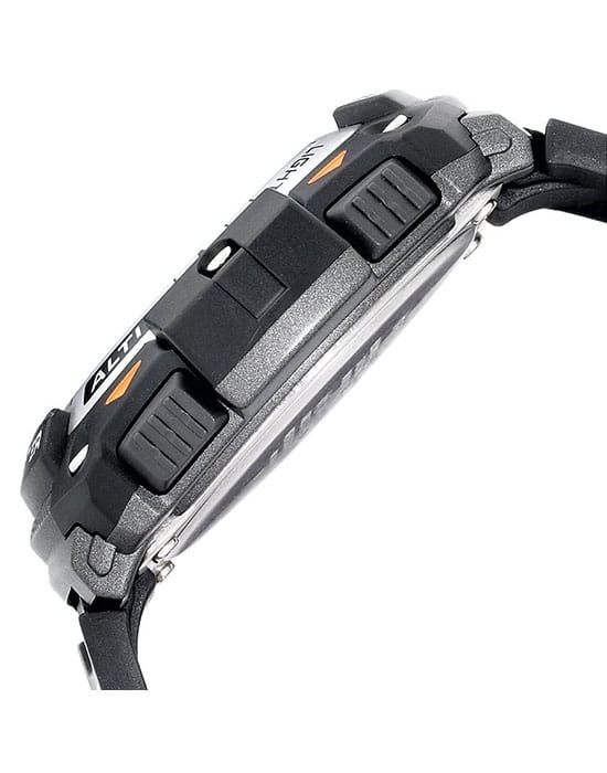 Часы идеально подойдут для поклонников активного образа жизни. Модуль аксессуара устойчив к низким температурам и может выдержать температуру даже ниже -10 °C. Встроены барометр, высотомер и термометр. Функция мирового времениМировое время Полезное часовое усложнение, отображающее время в основных городах и известных областях по всему миру, оно связано с часовыми поясами, удобно для путешественников и бизнесменов. . Пластиковое стекло. Водонепроницаемость в 100 WR.