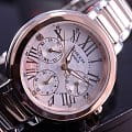 Стильные женские наручные часы, выполненные в fashion стиле. Кварцевые часы с элементом питания SR920SW. Корпус и браслет часов выполнены из высокопрочной стали с частичным IP покрытием. Контрастные синие индексы и стрелки, циферблат украшен кристаллами Swarovski. Водонепроницаемость часов 50 метров, минеральное стекло, устойчивое к царапинам.