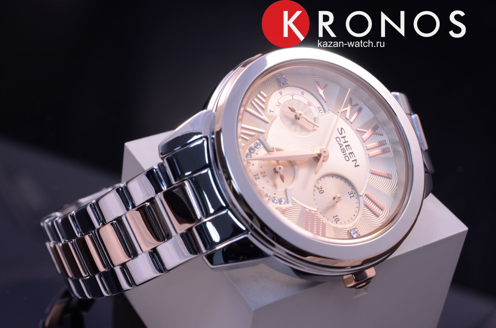Напоминаем, что коллекция Casio Sheen - это линейка ультра-стильных женских фешн-часов в стальном корпусе, способных украсить собой самое изысканное и утонченное женское запястье. Особенностью коллекции, сделавшей ее популярной во всем мире, является использование знаменитых кристаллов Swarovski в отделке циферблата каждой модели Sheen.