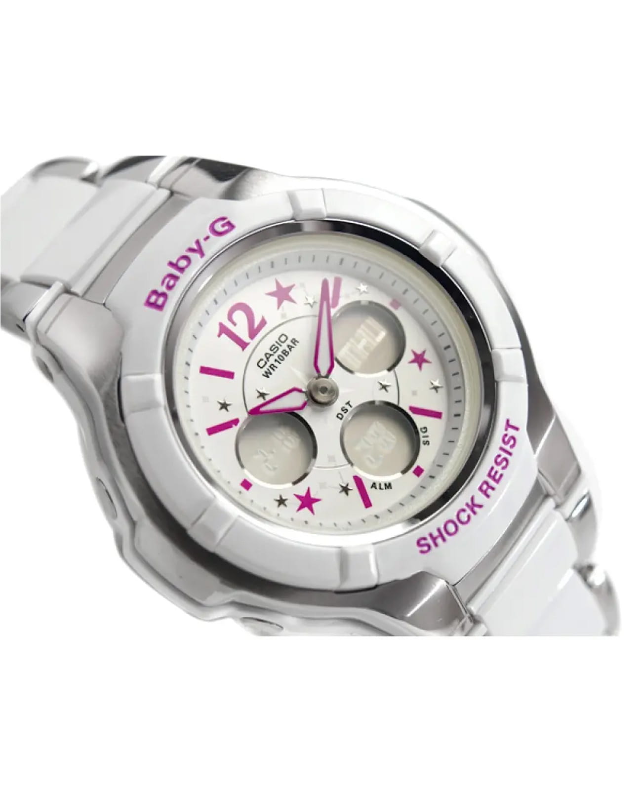 Японские женские часы-хронографХронографФункция позволяет измерять отрезки времени с особой точностью: часы, минуты, секунды. Верным признаком хронографа является наличие на циферблате 3 дополнительных окошек-счётчиков. Casio Baby-G BGA-120C-7B2 из коллекции Baby-G. Серия, которая выражает спортивность и цвет, которые являются основой бренда Baby-G. Минеральное стеклоМинеральное стеклоМинеральное стекло представляет собой искусственно выращенный минерал кварца. Такое стекло отличается особой устойчивостью к повреждениям и царапинам. Уступает по некоторым качествам сапфировому стеклу. устойчивое к появлению царапин, обладающее высокой прозрачностью. Корпус часов изготовлен из стали с пластиком. Функции: автоматическая светодиодная подсветка.Необритовое покрытиеПодсветка NeobriteИспользование светонакопительных составов на основе сульфида цинка или алюмината стронция, яркий свет можно наблюдать на протяжении 6-10 часов после «зарядки» часов около источника света. продолжает светиться в темноте даже после непродолжительного пребывания на свету.Ударопрочный корпусУдаропрочный корпусМеханизм заключён в корпус, выполненный из современных материалов, устойчивых к ударам, механическим повреждениям и падению с высоты: инновационный пластик, карбон, нержавеющая сталь, титан. защищает механизм от ударов и вибрации. Функция Мирового времениМировое время Полезное часовое усложнение, отображающее время в основных городах и известных областях по всему миру, оно связано с часовыми поясами, удобно для путешественников и бизнесменов. . СекундомерСекундомерСекундоме́р — прибор, способный измерять интервалы времени с точностью до долей секунды. с точностью измерения 1/100 секунды и измерением до 23 часов 59 минут 59,99 cек. ТаймерТаймерОтсчитывает секунды в обратном направлении в заданном интервале времени. обратного отсчета (диапазон времени 24 часа), автоматический календарь, 12/24 отображение времени. 5 ежедневных будильниковБудильникБуди́льник — часы, в заданный момент времени подающие звуковой, световой и/или в редких случаях другой сигнал.. Класс водозащиты: 100 метров, позволит плавать без погружения. Браслет из стали с пластиковыми вставками на раскладной застёжкеРаскладная застёжкаТакой тип застёжки используется только на браслетах из металла. Она никогда не раскрывается полностью, происходит разделение на 2 и более частей. Раскладывающая застёжка снизит вероятность потери часов к минимуму..