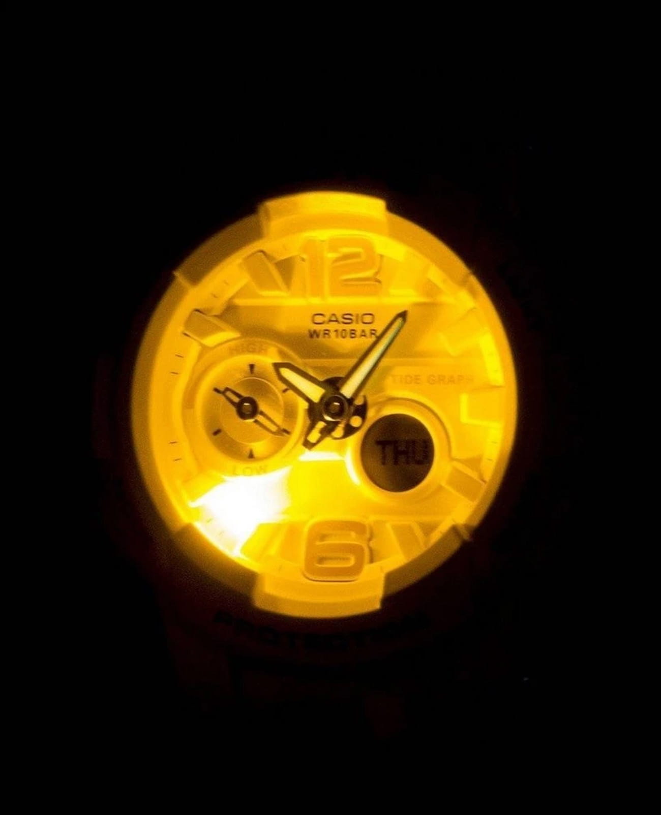 Японские женские часы-хронографХронографФункция позволяет измерять отрезки времени с особой точностью: часы, минуты, секунды. Верным признаком хронографа является наличие на циферблате 3 дополнительных окошек-счётчиков. Casio Baby-G BGA-180BE-7BDR из коллекции Baby-G. Минеральное стеклоМинеральное стеклоМинеральное стекло представляет собой искусственно выращенный минерал кварца. Такое стекло отличается особой устойчивостью к повреждениям и царапинам. Уступает по некоторым качествам сапфировому стеклу. устойчивое к появлению царапин, обладающее высокой прозрачностью. Корпус часов изготовлен из полимерного материала. Светодиодная подсветкаСветодиодная подсветкаСветодиодная или LED-подсветка обеспечивает появление яркого холодного свечения за счёт LED-элементов - маленьких лампочек. Они потребляют минимальное количество энергии, чаще всего можно встретить 1 светодиод, в нижней части циферблата. с функцией послесвечения. Ударопрочный корпусУдаропрочный корпусМеханизм заключён в корпус, выполненный из современных материалов, устойчивых к ударам, механическим повреждениям и падению с высоты: инновационный пластик, карбон, нержавеющая сталь, титан. защищает механизм от ударов и вибрации. Функция Мирового времениМировое время Полезное часовое усложнение, отображающее время в основных городах и известных областях по всему миру, оно связано с часовыми поясами, удобно для путешественников и бизнесменов. и летнего времени, второй часовой пояс. СекундомерСекундомерСекундоме́р — прибор, способный измерять интервалы времени с точностью до долей секунды. с точностью измерения 1/100 секунды и измерением до 23 часов 59 минут 59,99 cек. ТаймерТаймерОтсчитывает секунды в обратном направлении в заданном интервале времени. обратного отсчета (диапазон времени 24 часа), автоматический календарь, 12/24 отображение времени. 5 ежедневных будильниковБудильникБуди́льник — часы, в заданный момент времени подающие звуковой, световой и/или в редких случаях другой сигнал.. Термометр от -10 до 60°C . Отображение возраста и фазы луны. Отображение сведений о приливах и отливах (уровень прилива на ближайшие 12 часов, и на определенную дату и время). Функция включения/отключения звука кнопок. Функция перемещения стрелок. Класс водозащиты: 100 метров, позволит плавать без погружения. Ремешок из полимерного материала на стандартной застежке.