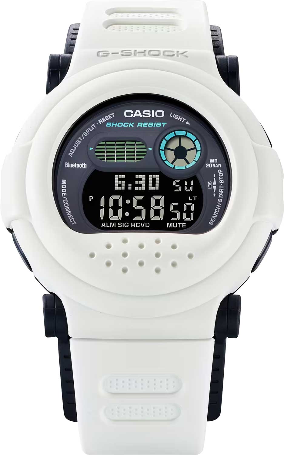 Модель Casio G-SHOCK G-B001SF-7 из коллекции "Sci-Fi World" представляет собой цифровые часы с футуристическим дизайном, вдохновленным научной фантастикой. Белый корпус с синими и фиолетовыми акцентами придает модели минималистичный и современный стиль. Корпус выполнен по технологии Carbon Core GuardCarbon Core Guard Новейшая структура корпуса, разработанная Casio. Полиуретановая пластина дополнительно усилена карбоновыми вставками, что придаёт специальную защиту от механических повреждений. Карбон отличается лёгкостью и прочностью., обеспечивающей повышенную прочность и устойчивость к ударам. Съемный уретановый безельБезельВнешний ободок, закрепляющий стекло. В спортивных часах так называется поворотное кольцо с делениями на циферблате, выполняет роль таймера – замеряет отрезки времени на шкале. Неподвижный безель – элемент декора. Однонаправленно вращающийся безель на дайверских часах позволяет фиксировать моменты погружения и выныривания на поверхность. позволяет менять внешний вид часов, открывая черный внутренний слой с люминесцентным эффектом. Часы оснащены Bluetooth®-синхронизациейBluetoothСовременная технология, позволяющая синхронизировать часы с телефоном и переносить данные. Часы с Bluetooth расширяют возможности вашего смартфона и делают его использование ещё более удобным., позволяющей подключаться к смартфону через приложение CASIO WATCHES. Функционал включает мировое времяМировое время Полезное часовое усложнение, отображающее время в основных городах и известных областях по всему миру, оно связано с часовыми поясами, удобно для путешественников и бизнесменов. с 38 часовыми поясами, секундомерСекундомерСекундоме́р — прибор, способный измерять интервалы времени с точностью до долей секунды. с точностью 1/100 секунды, таймер обратного отсчетаТаймерОтсчитывает секунды в обратном направлении в заданном интервале времени., 5 будильниковБудильникБуди́льник — часы, в заданный момент времени подающие звуковой, световой и/или в редких случаях другой сигнал. и светодиодную подсветку Super IlluminatorСветодиодная подсветкаСветодиодная или LED-подсветка обеспечивает появление яркого холодного свечения за счёт LED-элементов - маленьких лампочек. Они потребляют минимальное количество энергии, чаще всего можно встретить 1 светодиод, в нижней части циферблата. с автоматическим включением. Минеральное стеклоМинеральное стеклоМинеральное стекло представляет собой искусственно выращенный минерал кварца. Такое стекло отличается особой устойчивостью к повреждениям и царапинам. Уступает по некоторым качествам сапфировому стеклу. защищает дисплей от повреждений, а водонепроницаемость до 200 метров делает часы идеальными для плавания и активного отдыха. Casio G-SHOCK G-B001SF-7 — это сочетание передовых технологий, высокой прочности и инновационного дизайна, созданное для активных и стильных людей.