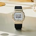 Японские женские часы-хронографХронографФункция позволяет измерять отрезки времени с особой точностью: часы, минуты, секунды. Верным признаком хронографа является наличие на циферблате 3 дополнительных окошек-счётчиков. Casio G-Shock GM-S5600BC-1. Передовая технология ковки придает металлическому безелюБезельВнешний ободок, закрепляющий стекло. В спортивных часах так называется поворотное кольцо с делениями на циферблате, выполняет роль таймера – замеряет отрезки времени на шкале. Неподвижный безель – элемент декора. Однонаправленно вращающийся безель на дайверских часах позволяет фиксировать моменты погружения и выныривания на поверхность., теперь более светлого желто-золотого цвета, вид драпированной ткани. Благодаря ярко контрастирующему черному ремешку, элегантному и изысканному дизайну эти часы займут достойное место в вашей шкатулке для украшений. Минеральное стеклоМинеральное стеклоМинеральное стекло представляет собой искусственно выращенный минерал кварца. Такое стекло отличается особой устойчивостью к повреждениям и царапинам. Уступает по некоторым качествам сапфировому стеклу. устойчивое к появлению царапин, обладающее высокой прозрачностью. Ударопрочный корпусУдаропрочный корпусМеханизм заключён в корпус, выполненный из современных материалов, устойчивых к ударам, механическим повреждениям и падению с высоты: инновационный пластик, карбон, нержавеющая сталь, титан. с IP-покрытиемIP-покрытиеМетод ионного напыления. Демонстрирует повышенную устойчивость к истиранию, окислению и химическим веществам. Под воздействием высокого давления и температуры около 1500°C молекулы металла надёжно соединяются с частицами корпуса часов. защищает механизм от ударов и вибрации. Светодиодная подсветкаСветодиодная подсветкаСветодиодная или LED-подсветка обеспечивает появление яркого холодного свечения за счёт LED-элементов - маленьких лампочек. Они потребляют минимальное количество энергии, чаще всего можно встретить 1 светодиод, в нижней части циферблата. освещает весь циферблат, после отпускания кнопки свечение продолжается еще некоторое время. Настраиваемое послесвечение 1,5 или 3сек. СекундомерСекундомерСекундоме́р — прибор, способный измерять интервалы времени с точностью до долей секунды. с точностью измерения 1/100 секунды и измерением до 23 часов 59 минут 59,99 cек. ТаймерТаймерОтсчитывает секунды в обратном направлении в заданном интервале времени. обратного отсчета (диапазон времени 24 часа), автоматический календарь, 12/24 отображение времени. будильникБудильникБуди́льник — часы, в заданный момент времени подающие звуковой, световой и/или в редких случаях другой сигнал., ежечасный сигнал. Батарея рассчитана на 3 года. Класс водозащиты: 200 метров, позволит плавать, нырять и заниматься другими водными видами спорта. Ремешок из полимерного материала на стандартной застежке.