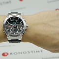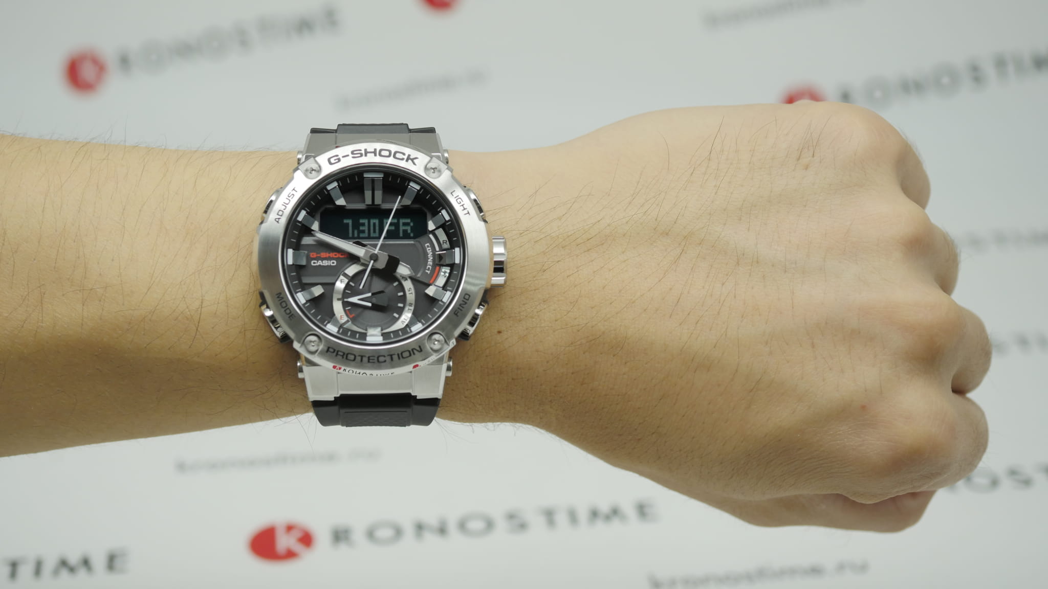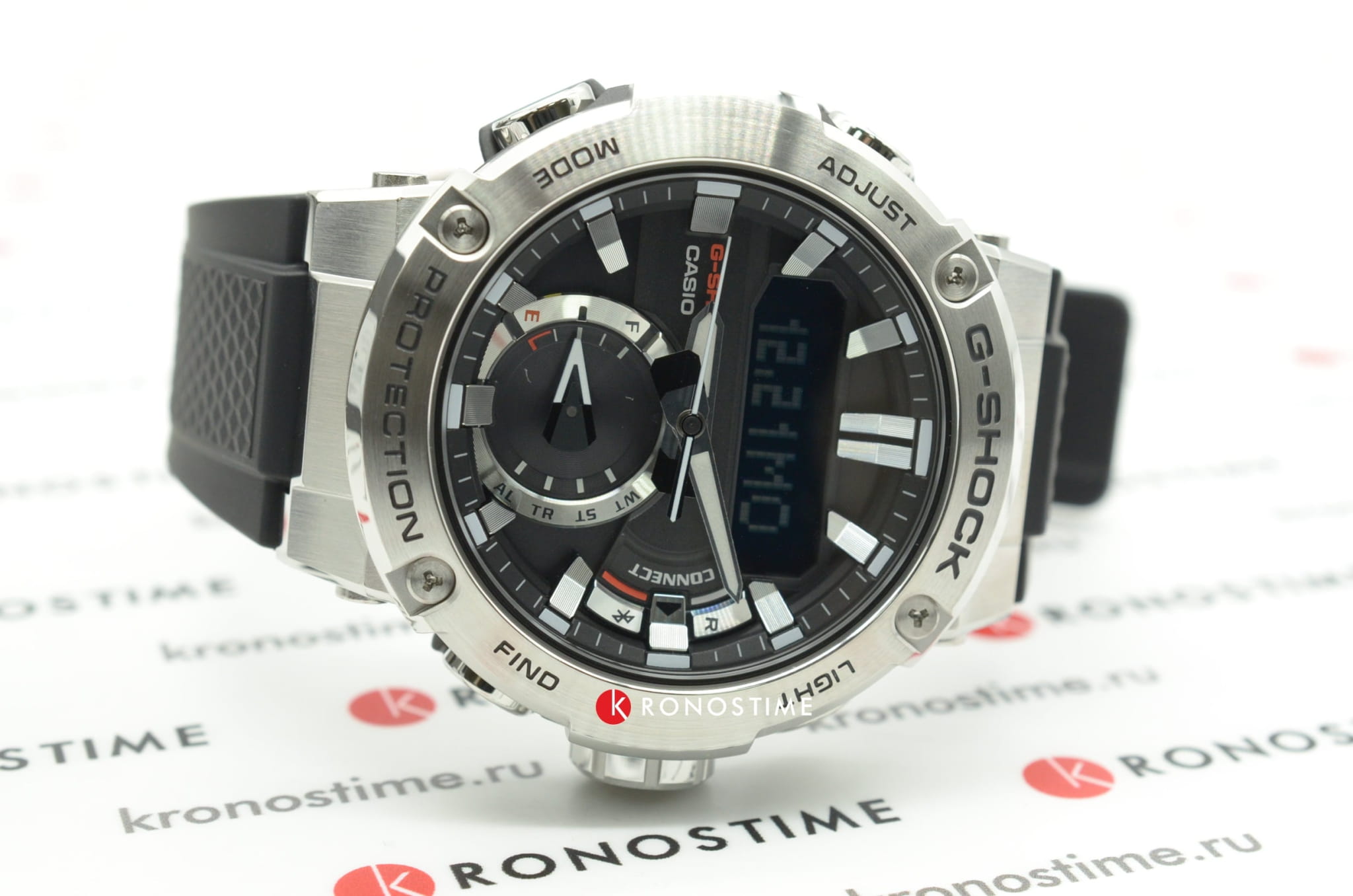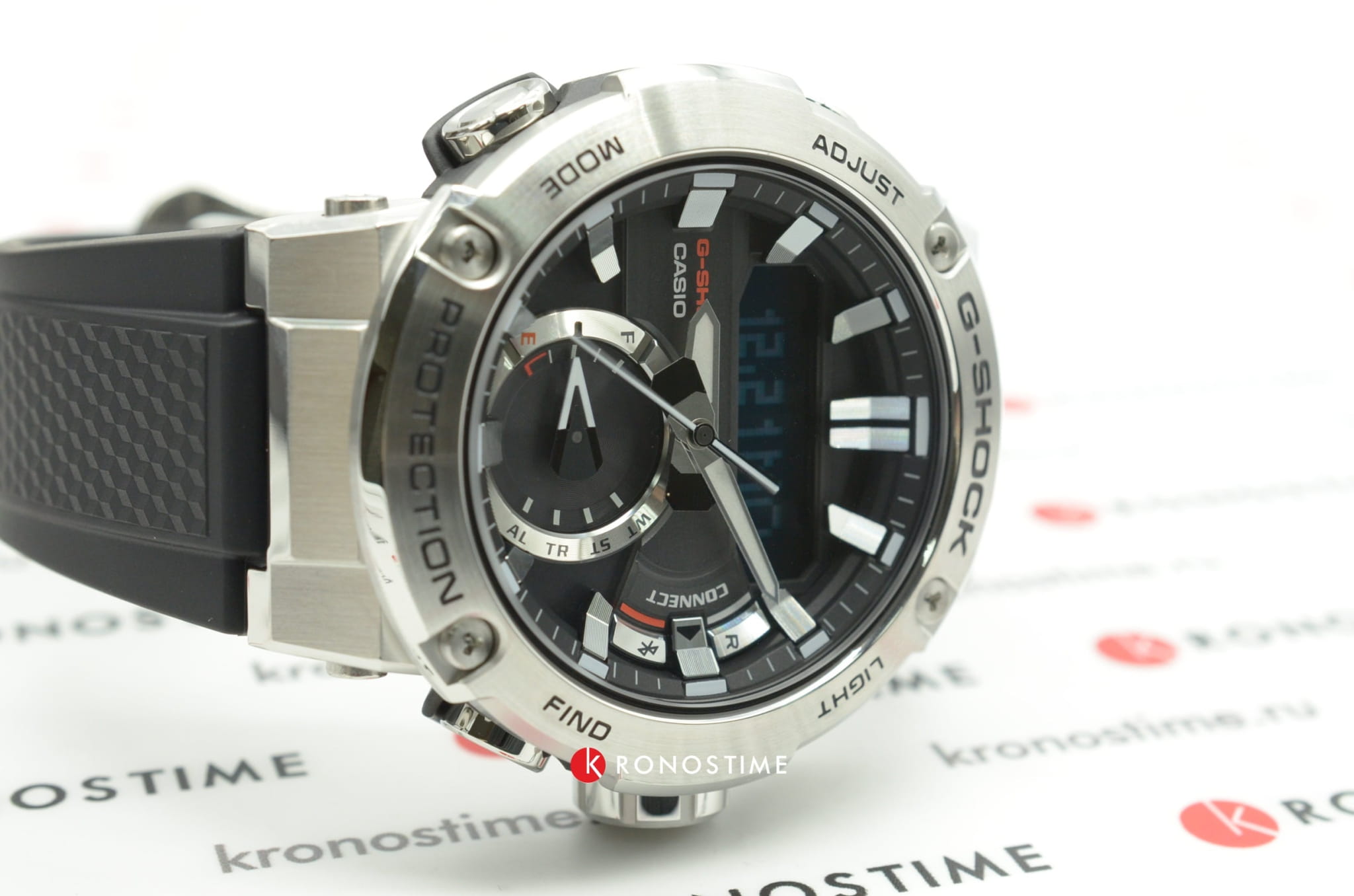 Наручные часы в чёрно-серебристой расцветке помогут всегда находиться в центре внимания, они станут выигрышной деталью любого образа. Разработчики Casio выбрали для этой модели обновлённый противоударный корпусУдаропрочный корпусМеханизм заключён в корпус, выполненный из современных материалов, устойчивых к ударам, механическим повреждениям и падению с высоты: инновационный пластик, карбон, нержавеющая сталь, титан., реализовав технологию Carbon Core GuardCarbon Core Guard Новейшая структура корпуса, разработанная Casio. Полиуретановая пластина дополнительно усилена карбоновыми вставками, что придаёт специальную защиту от механических повреждений. Карбон отличается лёгкостью и прочностью.. Часы на солнечной батарее станут идеальным спутником в любой ситуации. Двойная подсветка - люминесцентнаяЛюминесцентное покрытиеПозволяет считывать показания времени в темноте. Производители наносят на стрелки, часовые индексы, безель или поверхность циферблата светонакопительный состав, дающий холодное свечение. и светодиодная Светодиодная подсветкаСветодиодная или LED-подсветка обеспечивает появление яркого холодного свечения за счёт LED-элементов - маленьких лампочек. Они потребляют минимальное количество энергии, чаще всего можно встретить 1 светодиод, в нижней части циферблата.. Ремешок из полимерного материала. БезельБезельВнешний ободок, закрепляющий стекло. В спортивных часах так называется поворотное кольцо с делениями на циферблате, выполняет роль таймера – замеряет отрезки времени на шкале. Неподвижный безель – элемент декора. Однонаправленно вращающийся безель на дайверских часах позволяет фиксировать моменты погружения и выныривания на поверхность. из нержавеющей стали 316L. Минеральное стекло. Индикатор состояния заряда батарейки. Функции: BluetoothBluetoothСовременная технология, позволяющая синхронизировать часы с телефоном и переносить данные. Часы с Bluetooth расширяют возможности вашего смартфона и делают его использование ещё более удобным., будильник, секундомер, таймер, мировое времяМировое время Полезное часовое усложнение, отображающее время в основных городах и известных областях по всему миру, оно связано с часовыми поясами, удобно для путешественников и бизнесменов. , автоматический календарь. Габариты: 53,9 x 49,2 x 14,5 мм.