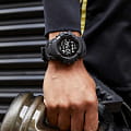 Первые смарт-часы в линейке G-Shock из серии GSW-H1000 на базе полноценной Wear OS от Google. Модель в черной стелс-расцветке со стальным безелем получила двойной сенсорный дисплей: цветной 360×360 TFT LCD дисплей для полноценного режима и черно-белый для экономного, в котором часы могут отображать время и показатели датчиков в течение месяца без подзарядки. В часах установлен литий-ионный аккумулятор, полностью заряжающийся от магнитной USB-зарядки за 3 часа.