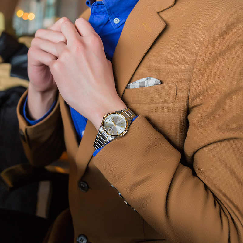 Японские мужские наручные часы с минеральным стекломМинеральное стеклоМинеральное стекло представляет собой искусственно выращенный минерал кварца. Такое стекло отличается особой устойчивостью к повреждениям и царапинам. Уступает по некоторым качествам сапфировому стеклу. MTP-1183G-7A, кварцевый механизм с высокой точностью. Класс водозащиты: 30 метров, позволит защитить корпус от случайных брызг или капель дождя. Корпус и браслет часов изготовлен из стали с IP-покрытиемIP-покрытиеМетод ионного напыления. Демонстрирует повышенную устойчивость к истиранию, окислению и химическим веществам. Под воздействием высокого давления и температуры около 1500°C молекулы металла надёжно соединяются с частицами корпуса часов..  Окошко даты находится в положении 3 часа.Стальной браслет на раскладной застёжкеРаскладная застёжкаТакой тип застёжки используется только на браслетах из металла. Она никогда не раскрывается полностью, происходит разделение на 2 и более частей. Раскладывающая застёжка снизит вероятность потери часов к минимуму..