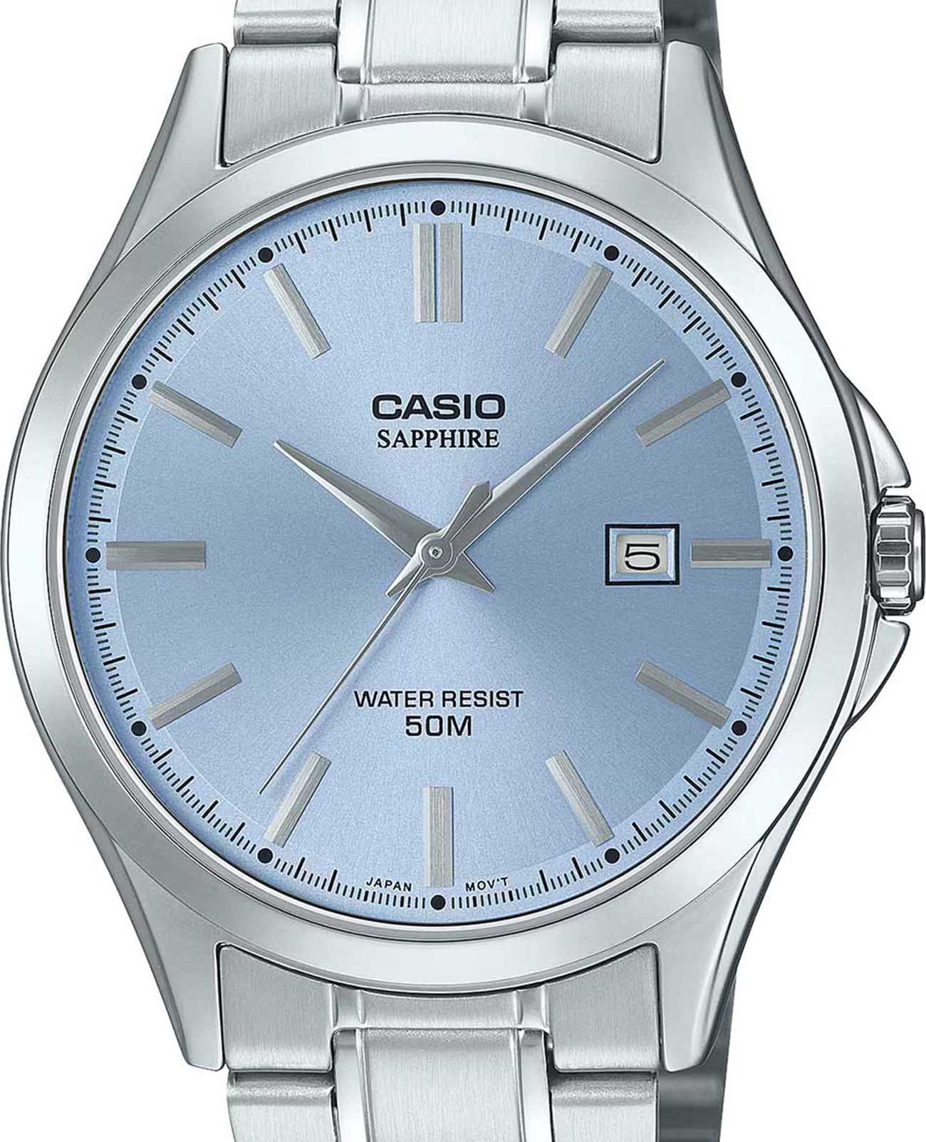 Мужские кварцевые часы Casio MTS-115D-2A2 — точность и элегантность в повседневном исполнении. Круглый корпус размером 41,3 мм из нержавеющей стали, голубой циферблат с солнечной текстурой Sunray и штрихами, окошко даты в положении 3 часов. Стекло — сапфировоеСапфировое стеклоПрочный и надёжный материал из кристалла сапфира синтетического происхождения, характеризующийся особой твёрдостью и устойчивостью к царапинам и повреждениям., устойчивое к царапинам. Механизм — японский кварцевый. Водонепроницаемость 50 м. Заводная головка с защитой. Браслет — стальной на раскладной застёжкеРаскладная застёжкаТакой тип застёжки используется только на браслетах из металла. Она никогда не раскрывается полностью, происходит разделение на 2 и более частей. Раскладывающая застёжка снизит вероятность потери часов к минимуму. с двойной фиксацией. Идеальный выбор для тех, кто ценит японский дизайн и надёжную повседневную функциональность.