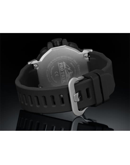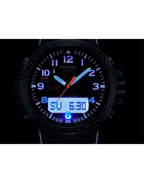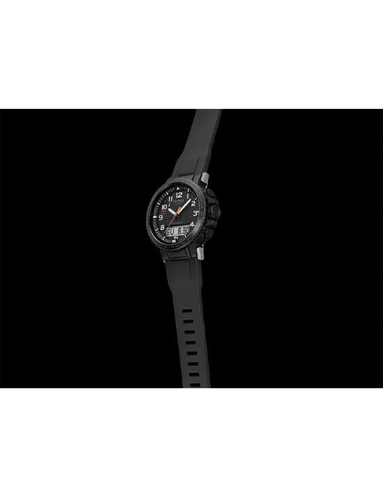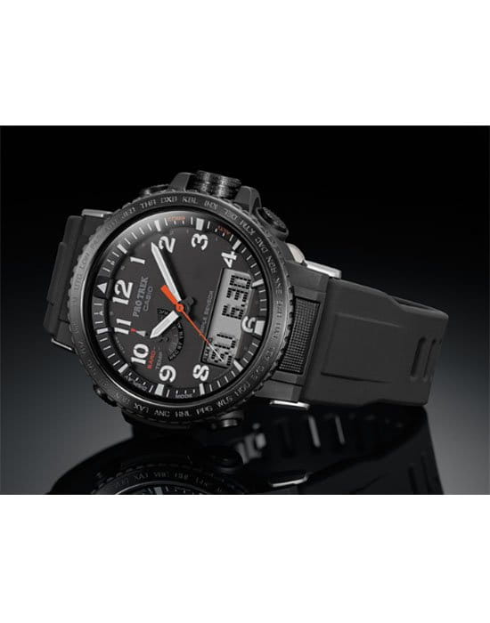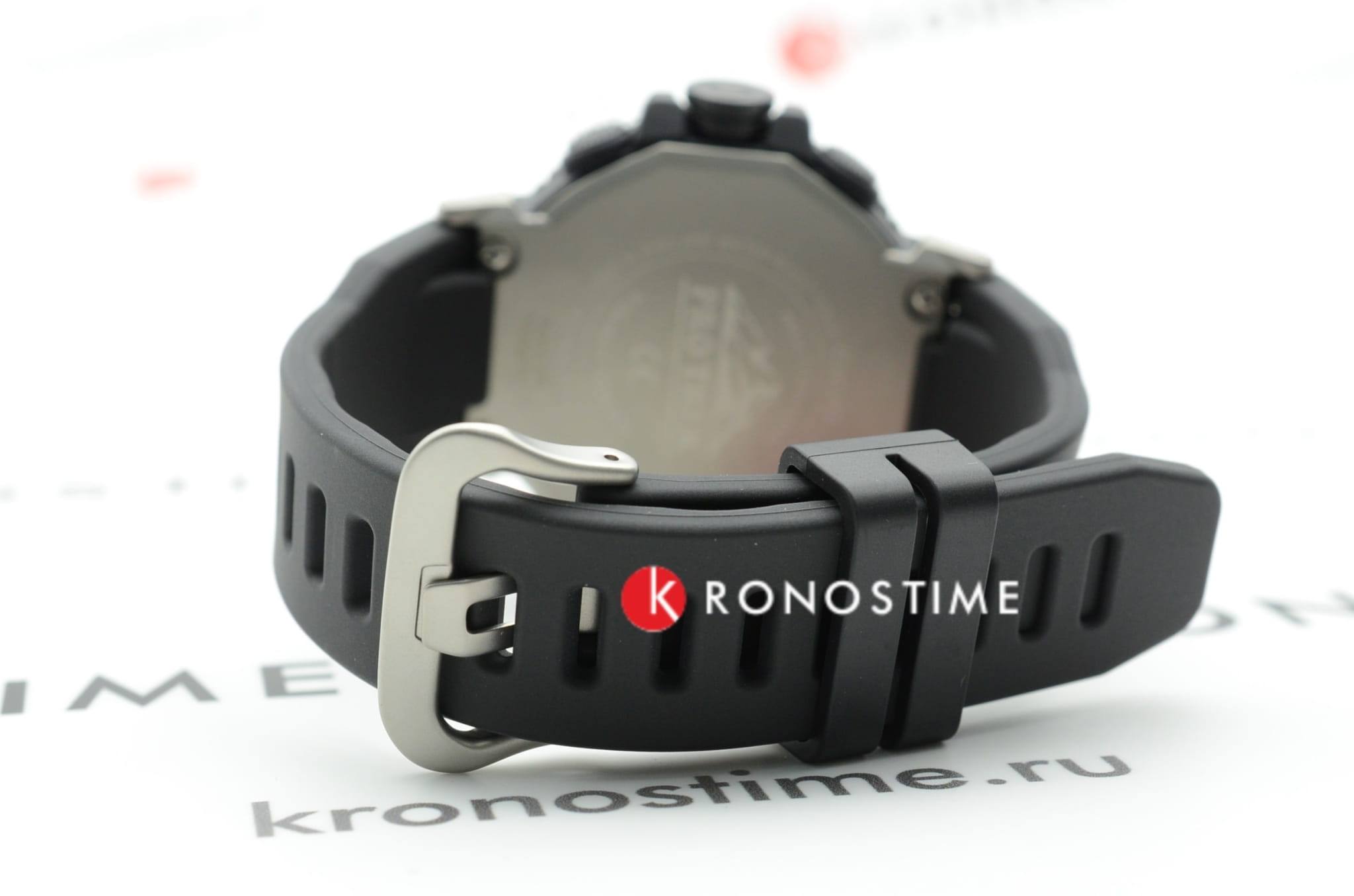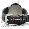 Аксессуар в спортивном стиле станет неотъемлемой частью экипировки опытного туриста, ведь он обладает полезными часовыми усложнениями. Выделяют барометр, цифровой компас, таймер обратного отсчёта, датчик измерения температуры окружающего воздуха -10°C /+60°C, высотомер с памятью данных, мировое времяМировое время Полезное часовое усложнение, отображающее время в основных городах и известных областях по всему миру, оно связано с часовыми поясами, удобно для путешественников и бизнесменов. , приём радиосигнала для настройки точного времени, хронографХронографФункция позволяет измерять отрезки времени с особой точностью: часы, минуты, секунды. Верным признаком хронографа является наличие на циферблате 3 дополнительных окошек-счётчиков., календарь. Японский кварцевый механизм получает энергию для работы от солнечной батареи – технология . Индикатор уровня заряда батареи. Минеральное стекло. Стальной безельБезельВнешний ободок, закрепляющий стекло. В спортивных часах так называется поворотное кольцо с делениями на циферблате, выполняет роль таймера – замеряет отрезки времени на шкале. Неподвижный безель – элемент декора. Однонаправленно вращающийся безель на дайверских часах позволяет фиксировать моменты погружения и выныривания на поверхность. с IP-покрытиемIP-покрытиеМетод ионного напыления. Демонстрирует повышенную устойчивость к истиранию, окислению и химическим веществам. Под воздействием высокого давления и температуры около 1500°C молекулы металла надёжно соединяются с частицами корпуса часов., устойчивым к износу. Аналоговый циферблат и дисплей со светодиодной подсветкойСветодиодная подсветкаСветодиодная или LED-подсветка обеспечивает появление яркого холодного свечения за счёт LED-элементов - маленьких лампочек. Они потребляют минимальное количество энергии, чаще всего можно встретить 1 светодиод, в нижней части циферблата.. Стрелки с подсветкой NeobriteПодсветка NeobriteИспользование светонакопительных составов на основе сульфида цинка или алюмината стронция, яркий свет можно наблюдать на протяжении 6-10 часов после «зарядки» часов около источника света.. Пластиковый ударопрочный корпусУдаропрочный корпусМеханизм заключён в корпус, выполненный из современных материалов, устойчивых к ударам, механическим повреждениям и падению с высоты: инновационный пластик, карбон, нержавеющая сталь, титан. и браслет. Водостойкость до 10 бар. Габариты: 50,5 x 47,2 x 13,3 мм.