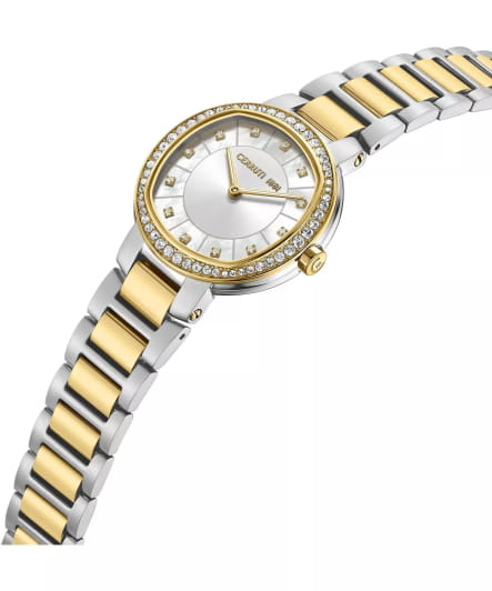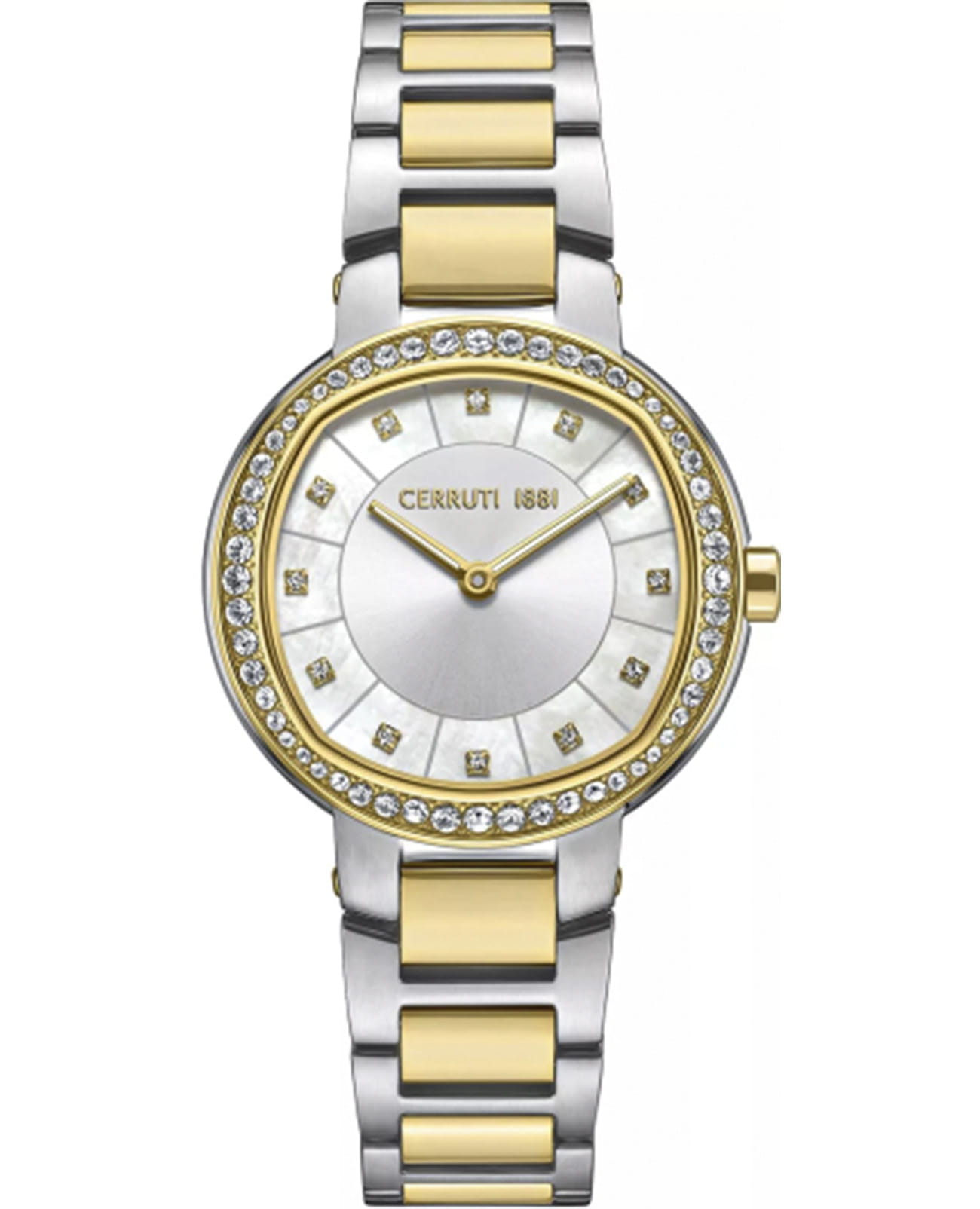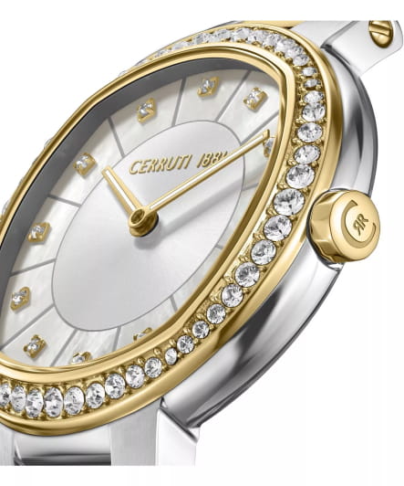 Женские кварцевые часы Cerruti 1881 Bellegra CIWLG0086504 — утончённая французская элегантность с перламутровым сиянием. Корпус из нержавеющей стали 316L. БезельБезельВнешний ободок, закрепляющий стекло. В спортивных часах так называется поворотное кольцо с делениями на циферблате, выполняет роль таймера – замеряет отрезки времени на шкале. Неподвижный безель – элемент декора. Однонаправленно вращающийся безель на дайверских часах позволяет фиксировать моменты погружения и выныривания на поверхность. с PVD-покрытиемPVDУльтратонкое покрытие наносится в технике вакуумного напыления, сочетает в себе нитрид титана особой прочности со слоем золота или оксида хрома. Несёт в себе декоративную или защитную функцию. золотистого цвета, диаметром 32 мм. Циферблат — золотой перламутровый с тиснением и точечными метками, инкрустированными кристаллами. Стекло — минеральноеМинеральное стеклоМинеральное стекло представляет собой искусственно выращенный минерал кварца. Такое стекло отличается особой устойчивостью к повреждениям и царапинам. Уступает по некоторым качествам сапфировому стеклу. с сапфировым покрытием. Браслет — стальной с PVD-покрытиемPVDУльтратонкое покрытие наносится в технике вакуумного напыления, сочетает в себе нитрид титана особой прочности со слоем золота или оксида хрома. Несёт в себе декоративную или защитную функцию. на застёжке «бабочка» с кнопкамиЗастёжка "бабочка"Такой вид застёжки дополняется предохранителями, помогающими избежать случайного раскрытия браслета. Обладают изящным исполнением. . Водонепроницаемость 50 м. Идеальный выбор для тех, кто ценит французский дизайн и изысканную женственность.