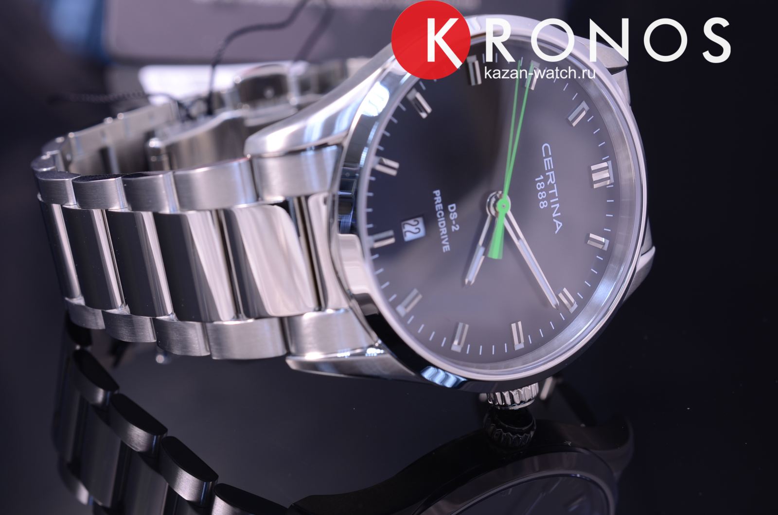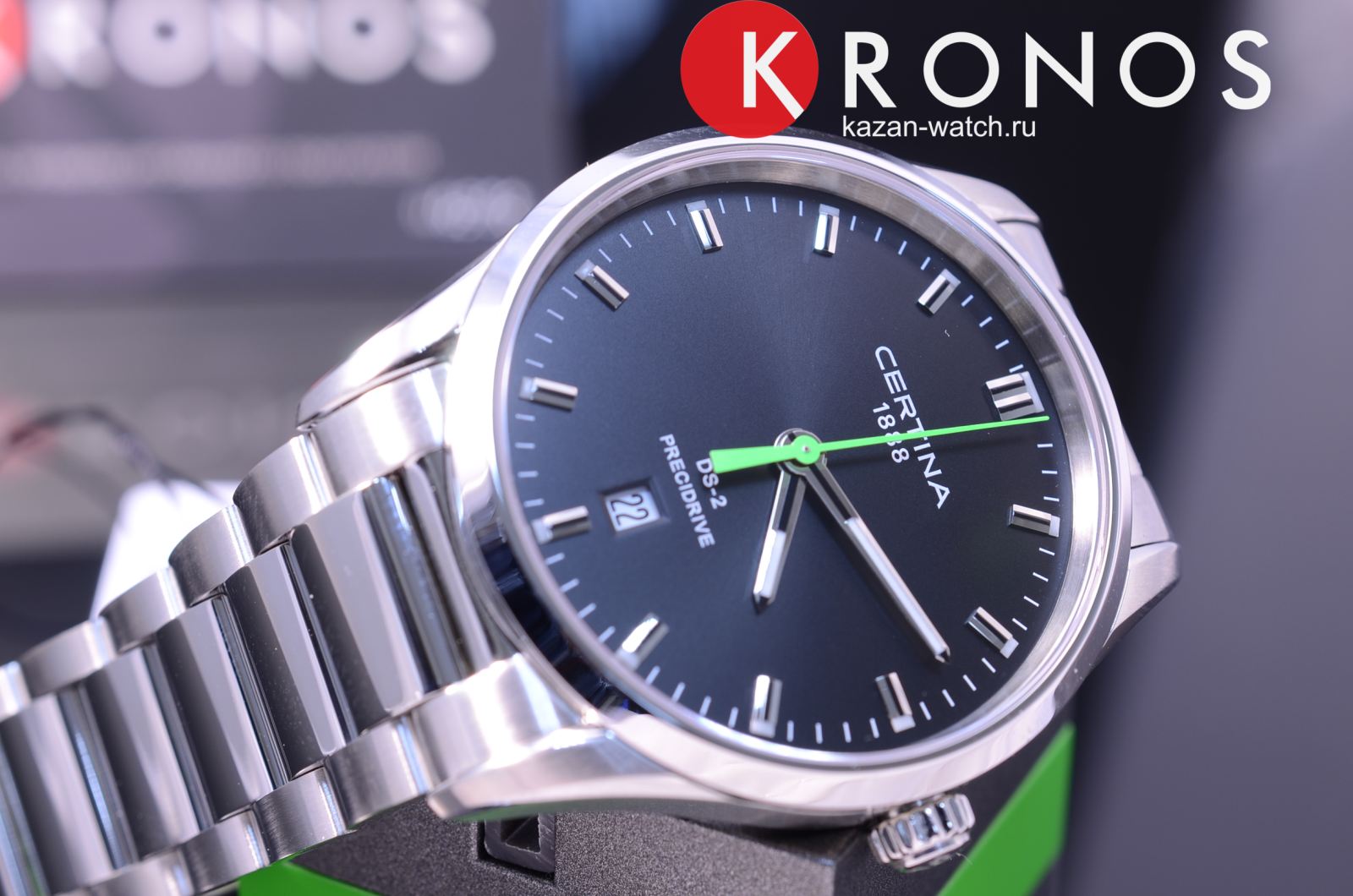 Наручные часы не имеют лишних деталей, всё выглядит строго и лаконично. Яркой деталью является зелёная секундная стрелка, облегчающая читаемость данных. За высокую точность хода в ответе швейцарский кварцевый механизм ETA F06.411Precidrive™Precidrive™Инновационный кварцевый механизм Certina. Часы, оснащённые этим швейцарским калибром, приравниваются к точности к сертифицированным хронометрам, точность хода составляет +/-10 секунд в год.. Корпус и браслет изготовлены из стали 316L с антикоррозионными свойствами. Концепция Двойной Надёжности Double SecurityDS ConceptDouble Security Concept, обозначает двойную надёжность и безупречную точность часов Certina. Двойная система защиты подразумевает обеспечение максимальной устойчивости к ударам и высоких показателей водонепроницаемости.. Сапфировое стекло с односторонним покрытием «антиблик». Водостойкость 100 метров. Люминесцентная подсветкаЛюминесцентное покрытиеПозволяет считывать показания времени в темноте. Производители наносят на стрелки, часовые индексы, безель или поверхность циферблата светонакопительный состав, дающий холодное свечение.. Стальная . Окошко текущего числа, функция EOLEOLПредставляет собой систему, уведомляющую владельца часов о необходимости замены элемента питания. За 2 недели до полного разряда батарейки секундная стрелка перестаёт ходить чётко и начинает перепрыгивать на 3-4 деления.. Диаметр корпуса: 40 мм.