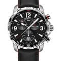 Брендовый хронографХронографФункция позволяет измерять отрезки времени с особой точностью: часы, минуты, секунды. Верным признаком хронографа является наличие на циферблате 3 дополнительных окошек-счётчиков. в чёрно-серебристом исполнении дополнен красными элементами, придающими общему виду динамичность. Наручные часы отличаются повышенной устойчивостью к высоким нагрузкам благодаря реализации фирменной концепции Двойной Надёжности DS ConceptDS ConceptDouble Security Concept, обозначает двойную надёжность и безупречную точность часов Certina. Двойная система защиты подразумевает обеспечение максимальной устойчивости к ударам и высоких показателей водонепроницаемости.. Швейцарский кварцевый механизм с высокой точностью хода ETA 251.264 AA Precidrive™Precidrive™Инновационный кварцевый механизм Certina. Часы, оснащённые этим швейцарским калибром, приравниваются к точности к сертифицированным хронометрам, точность хода составляет +/-10 секунд в год.. Повышенная водонепроницаемость WR 200. Завинчивающаяся заводная головка с защитой, закручивающаяся задняя крышка с гравировкой. Двухстороннее антибликовое покрытие сапфирового стекла. БезельБезельВнешний ободок, закрепляющий стекло. В спортивных часах так называется поворотное кольцо с делениями на циферблате, выполняет роль таймера – замеряет отрезки времени на шкале. Неподвижный безель – элемент декора. Однонаправленно вращающийся безель на дайверских часах позволяет фиксировать моменты погружения и выныривания на поверхность. со шкалой тахиметраТахиметрРазмеченная шкала, располагается на ободке или безеле часов. Тахиметр позволяет рассчитать скорость на определённом участке пути, расстояние измеряется в километрах или милях.. Яркая люминесцентная подсветкаЛюминесцентное покрытиеПозволяет считывать показания времени в темноте. Производители наносят на стрелки, часовые индексы, безель или поверхность циферблата светонакопительный состав, дающий холодное свечение.. Кожаный ремешок из натурального материала. Механизм индикации часовых поясов, отображение даты, измерение времени с точностью до 1/100 секунды. . Диаметр корпуса: 44 мм.