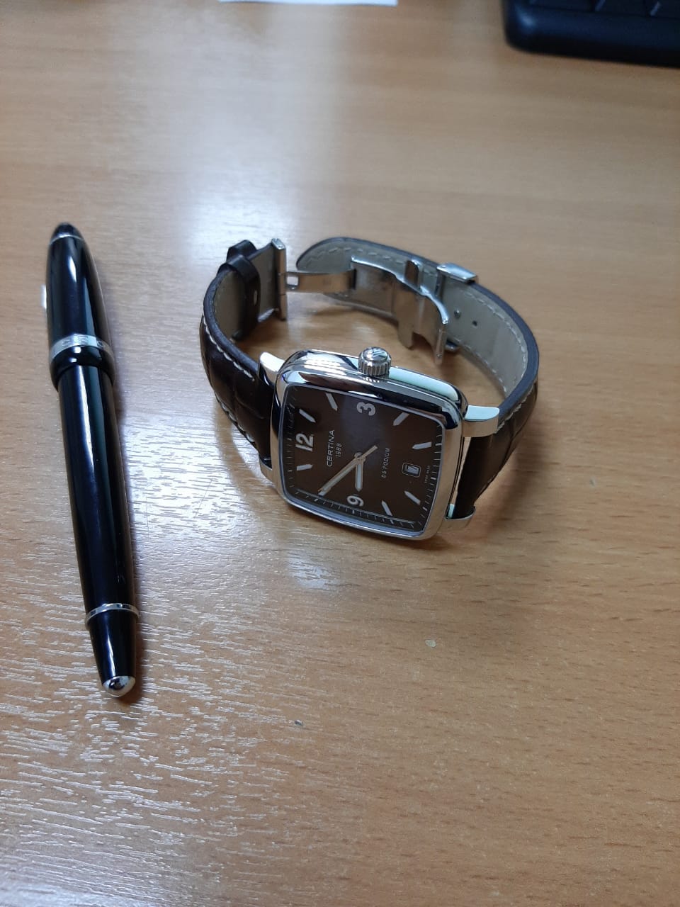 Одни из самых надежных часов в своем ценовом сегменте. , Часы Certina, как и многие швейцарские часто выпускаются с браслетами. Мне нравится кожа. Она всегда аккуратно облегает запястье и не ощущается при носке. Также часы обладают высокой степенью влагоустойчивости. Показатель впечатляет - WR100-10bar. Это погружение до 100 метров в воду.