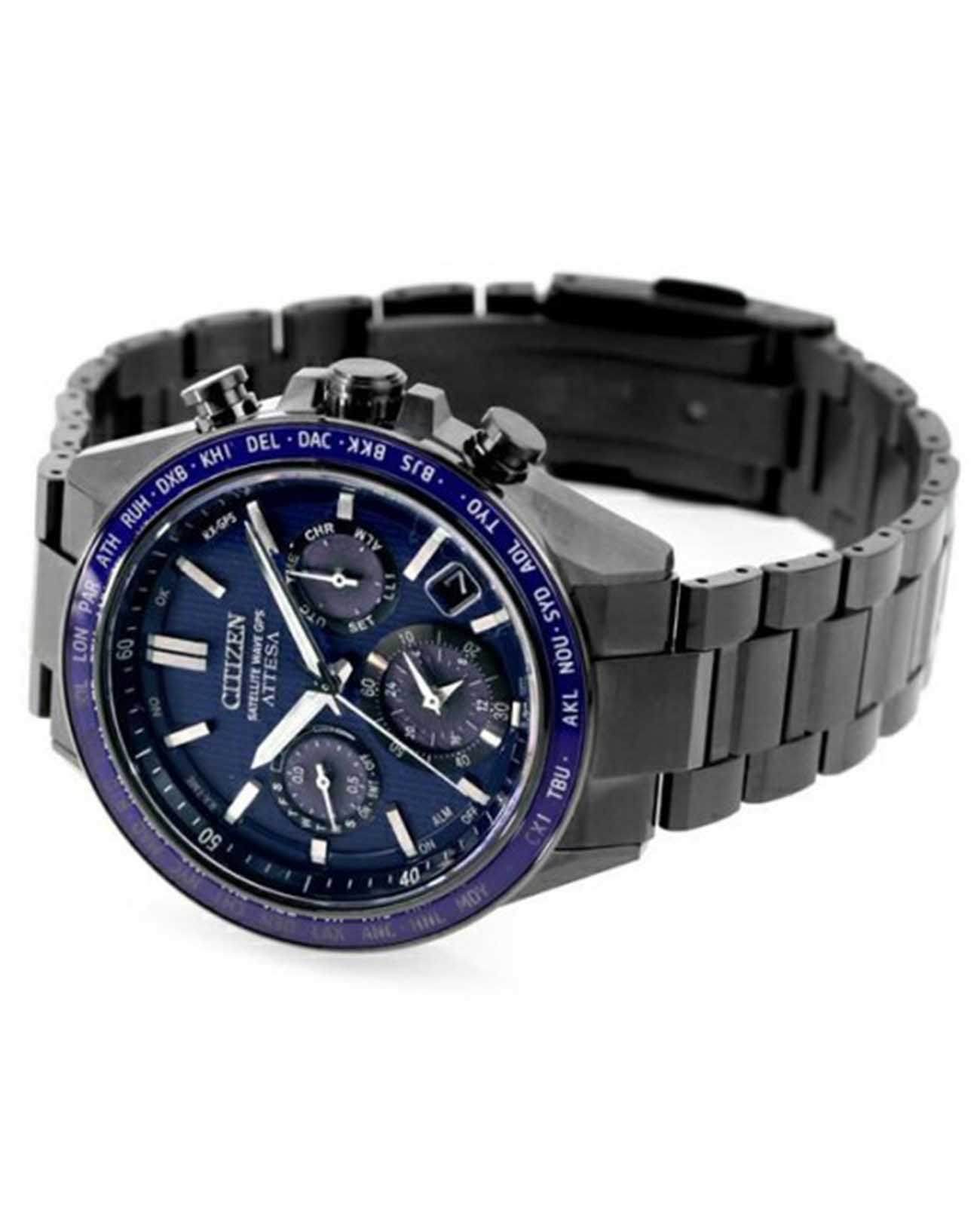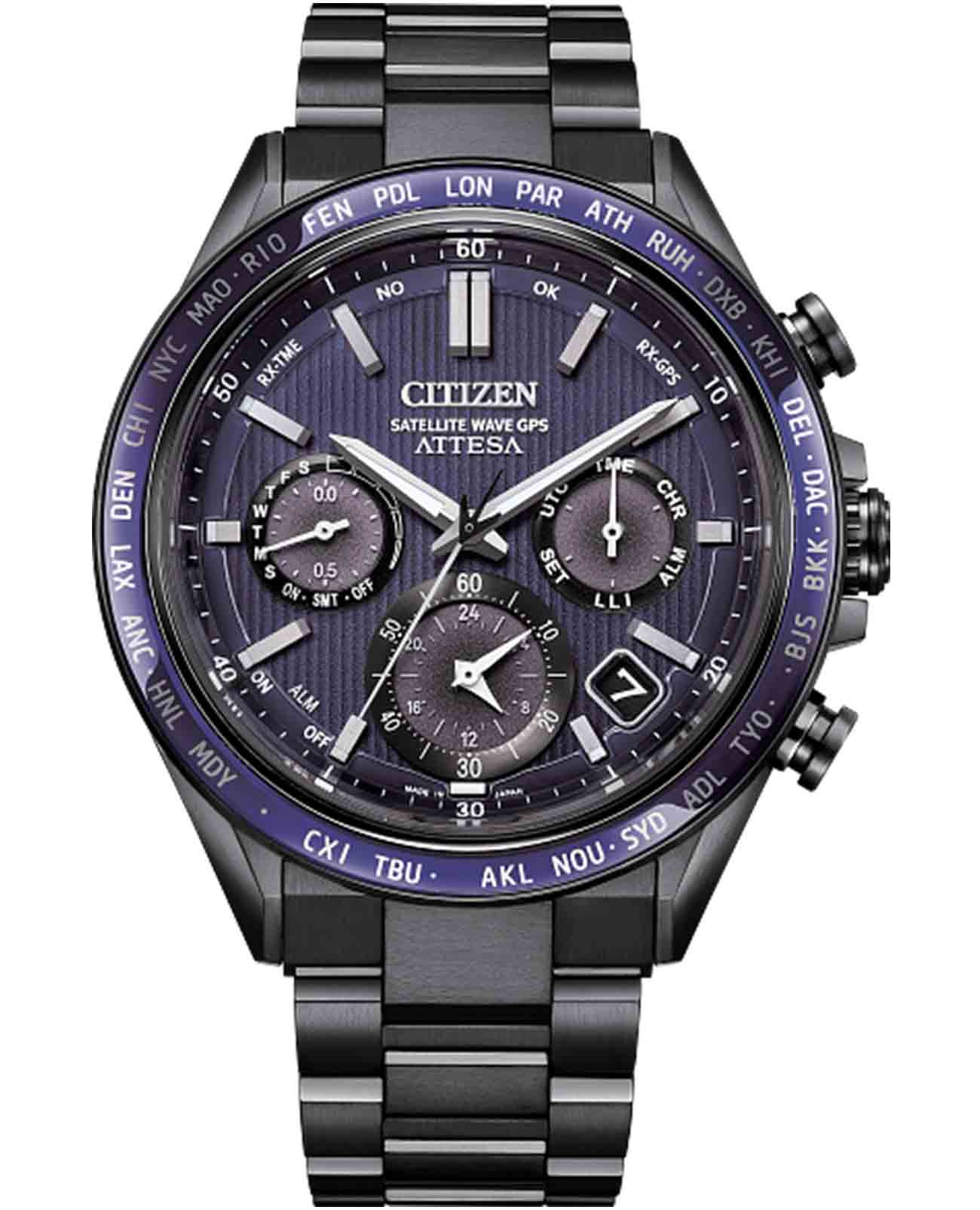 с самой высокой в мире скоростью приема сигнала — всего за 3 секунды, что обеспечивает точную настройку времени в любой точке мира. Среди дополнительных функций — мировое времяМировое время Полезное часовое усложнение, отображающее время в основных городах и известных областях по всему миру, оно связано с часовыми поясами, удобно для путешественников и бизнесменов. в 27 городах (40 часовых зон), индикатор летнего времени, второй часовой поясВторой часовой поясФункция, позволяющая отображать время двух часовых поясов одновременно. (GMTGMTОтображение времени второго часового пояса.Такая функция особенно актуальна для путешественников и бизнесменов,которые общаются с людьми из разных стран,теперь вы всегда будете знать,какой час у вашего партнёра или близкого человека.), будильник, вечный календарьВечный календарьКлассическое часовое усложнение, представляющее собой календарь, рассчитанный на несколько лет вперёд (стандартно – до 2099 года). Определяет текущую дату, день недели, месяц., апертура даты между 4 и 5 часами, отображение дня недели на малом циферблате, 12/24-часовой формат времени, а также секундомерСекундомерСекундоме́р — прибор, способный измерять интервалы времени с точностью до долей секунды. с точностью 1/2 секунды и пределом измерения до 24 часов. Сапфировое стеклоСапфировое стеклоПрочный и надёжный материал из кристалла сапфира синтетического происхождения, характеризующийся особой твёрдостью и устойчивостью к царапинам и повреждениям. с антибликовым покрытиемАнтибликовое покрытиеСлой оксида металла в 0,13-0,3 микрон, благодаря которому стекло часов не бликует и не отражает свет. Антибликовое покрытие уменьшает отражение света в 10 раз, обеспечивая отличную читаемость показателей циферблата. надежно защищает циферблат от царапин. Заводная головка снабжена защитой, а титановый браслет с DLC-покрытиемDLC-покрытиеDiamond like carbon - одно из лучших видов покрытия, представляющее собой углерод с алмазными свойствами. На поверхность материала наносятся распавшиеся молекулы углерода, превращающиеся в плёнку из алмазоподобных связей, которая перенимает твёрдость алмаза. и раскладывающейся застежкой обеспечивает комфорт и безопасность при носке. Водостойкость уровня WR 100 позволяет использовать часы при плавании и снорклинге. Вес модели составляет всего 110 г.