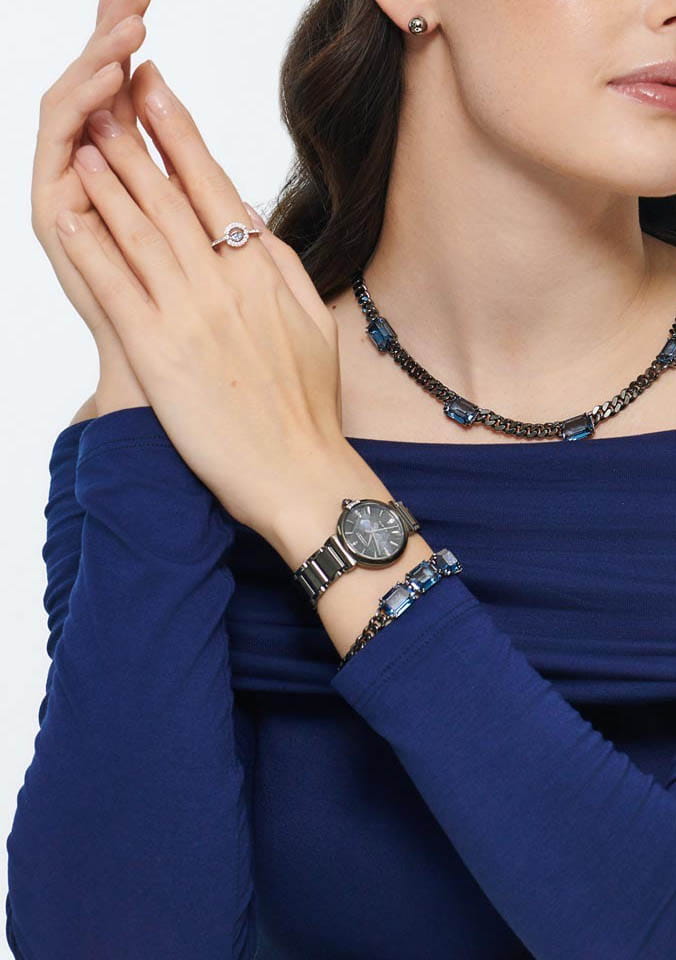 Часы Citizen EM1067-88E созданы в Японии и оснащены надежным кварцевым механизмом калибра Citizen E031 с современной технологией Eco-Drive, которая позволяет работать от солнечной энергии без необходимости замены батареек, обеспечивая запас хода до 180 дней. Корпус и браслет выполнены из прочной нержавеющей стали с черным IP-покрытиемIP-покрытиеМетод ионного напыления. Демонстрирует повышенную устойчивость к истиранию, окислению и химическим веществам. Под воздействием высокого давления и температуры около 1500°C молекулы металла надёжно соединяются с частицами корпуса часов., что гарантирует долговечность и утонченность внешнего вида, а браслет с застежкой «бабочка»Застёжка "бабочка"Такой вид застёжки дополняется предохранителями, помогающими избежать случайного раскрытия браслета. Обладают изящным исполнением. обеспечивает удобную посадку на запястье. Сине-зеленый циферблат украшен изящными кристаллами и метками в виде штрихов, а также защищен сапфировым стекломСапфировое стеклоПрочный и надёжный материал из кристалла сапфира синтетического происхождения, характеризующийся особой твёрдостью и устойчивостью к царапинам и повреждениям., устойчивым к царапинам. Корпус часов также инкрустирован кристаллами, что добавляет аксессуару особое сияние и шарм. Заводная головка украшена камнем в форме кабошона, подчеркивая изысканный дизайн модели. Водозащита 50WR позволяет использовать часы в повседневной жизни без опасений за их сохранность при контакте с водой. Компактные размеры корпуса (диаметр 29,5 мм, толщина 8,3 мм), ширина браслета 10 мм и вес 72 г обеспечивают комфортное ношение в течение всего дня. Эта модель станет ярким акцентом вашего образа и подчеркнет вашу индивидуальность как на деловой встрече, так и на торжественном мероприятии.