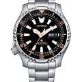 Citizen Promaster NY0160-66E - спортивный характер этих часов оценят современные мужчины, которые отдают предпочтение практичным и функциональным вещам. Лимитированная серия - 4000 экземпляров. Сертифицированные часы для дайвинга (ISO). Корпус из нержавеющей стали диаметром 42 мм идеально сбалансирован. Минеральное стеклоМинеральное стеклоМинеральное стекло представляет собой искусственно выращенный минерал кварца. Такое стекло отличается особой устойчивостью к повреждениям и царапинам. Уступает по некоторым качествам сапфировому стеклу. обеспечивает отличную защиту циферблата от царапин. Стальной браслет на раскладной застёжкеРаскладная застёжкаТакой тип застёжки используется только на браслетах из металла. Она никогда не раскрывается полностью, происходит разделение на 2 и более частей. Раскладывающая застёжка снизит вероятность потери часов к минимуму. идеально дополняют дизайн часов, обеспечивая комфортное ношение. Стрелки и метки на циферблате имеют люминесцентное покрытиеЛюминесцентное покрытиеПозволяет считывать показания времени в темноте. Производители наносят на стрелки, часовые индексы, безель или поверхность циферблата светонакопительный состав, дающий холодное свечение. позволяющее легко определять время даже в темноте. БезельБезельВнешний ободок, закрепляющий стекло. В спортивных часах так называется поворотное кольцо с делениями на циферблате, выполняет роль таймера – замеряет отрезки времени на шкале. Неподвижный безель – элемент декора. Однонаправленно вращающийся безель на дайверских часах позволяет фиксировать моменты погружения и выныривания на поверхность. с алюминиевой вставкой и IP-покрытиемIP-покрытиеМетод ионного напыления. Демонстрирует повышенную устойчивость к истиранию, окислению и химическим веществам. Под воздействием высокого давления и температуры около 1500°C молекулы металла надёжно соединяются с частицами корпуса часов. вращается в одном направлении. Запас хода 42 часов. Защищены от магнитных полей. Функция stop-second. Окошко даты находится в положении 3 часа. Часы обладают впечатляющей водонепроницаемостью до 200WR, что делает их идеальными для плавания, ныряния и погружений с аквалангом. Завинчивающаяся задняя крышка и заводная головка. Завинчивающаяся заводная головка с защитой расположена слева в положении 7 часов, что обеспечивает комфортное ношение на правой руке. Завинчивающаяся задняя крышка украшена выгравированным изображением рыбы фугу. В комплекте сменный полиуретановый ремешок.