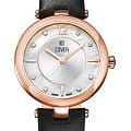 Женственные коктейльные часы COVER CO193.09 из коллекции Amelia работают на кварцевом калибре ETA. Циферблат имеет центральную область серебристого цвета с узором Sunray и белую перламутровую периферийную часть, которые защищены минеральным стекломМинеральное стеклоМинеральное стекло представляет собой искусственно выращенный минерал кварца. Такое стекло отличается особой устойчивостью к повреждениям и царапинам. Уступает по некоторым качествам сапфировому стеклу. с сапфировым напылением. В качестве часовых меток используются 8 кристаллов Swarovski, а также 3 накладных индекса и арабская цифра «12». Корпус 32 мм диаметром выполнен из нержавеющей стали с PVD-покрытиемPVDУльтратонкое покрытие наносится в технике вакуумного напыления, сочетает в себе нитрид титана особой прочности со слоем золота или оксида хрома. Несёт в себе декоративную или защитную функцию. цвета розового золота, с широким полированным безелемБезельВнешний ободок, закрепляющий стекло. В спортивных часах так называется поворотное кольцо с делениями на циферблате, выполняет роль таймера – замеряет отрезки времени на шкале. Неподвижный безель – элемент декора. Однонаправленно вращающийся безель на дайверских часах позволяет фиксировать моменты погружения и выныривания на поверхность.. Часы комплектуются черным кожаным ремешком на стандартной застёжке и имеют маркировку «Swiss Made».