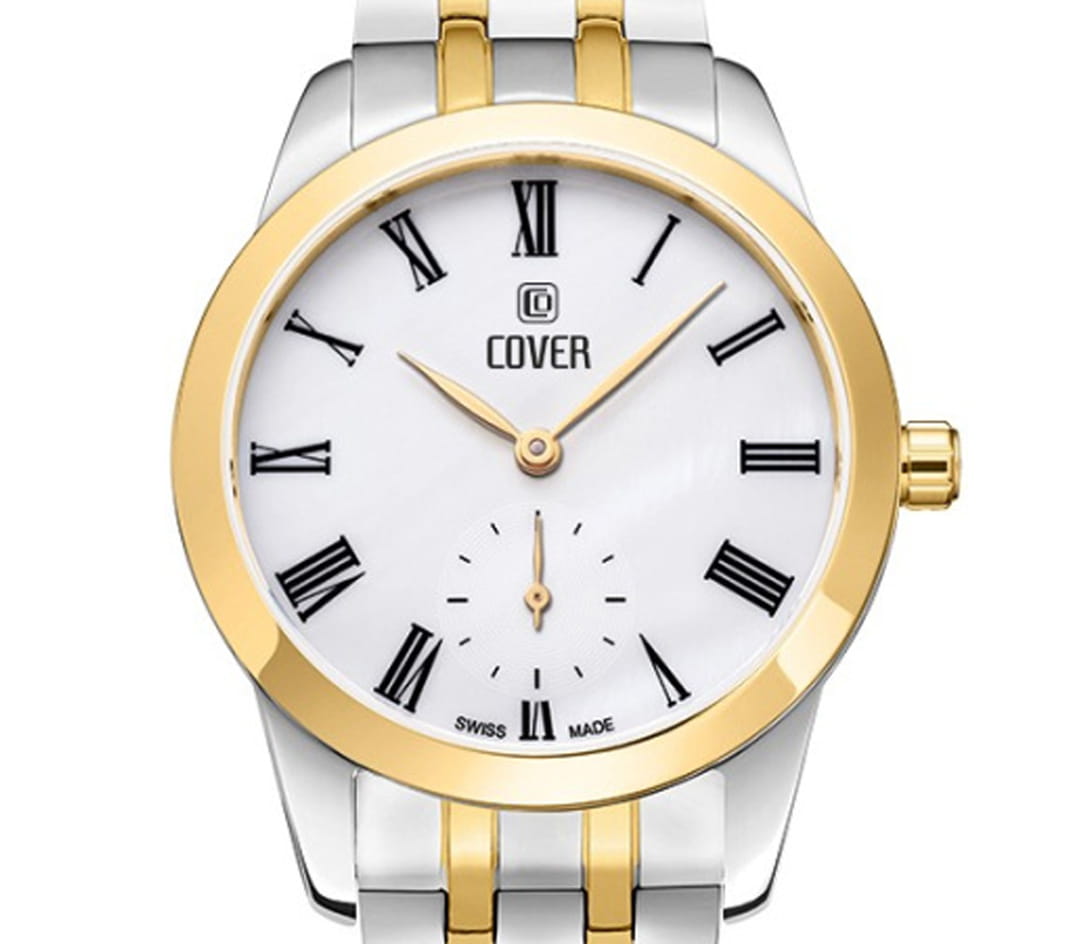 Часы  Cover Nobila CO195.08  - это аксессуар для истинных леди из коллекции Nobila. Часы работают на кварцевом калибре Ronda. Белый циферблат украшен печатными римскими цифрами и субдиском малой секундной стрелки на «6 часах» и защищен минеральным стекломМинеральное стеклоМинеральное стекло представляет собой искусственно выращенный минерал кварца. Такое стекло отличается особой устойчивостью к повреждениям и царапинам. Уступает по некоторым качествам сапфировому стеклу. с сапфировым напылением. Корпус диаметром 32 мм выполнен из нержавеющей стали. Широкий полированный безельБезельВнешний ободок, закрепляющий стекло. В спортивных часах так называется поворотное кольцо с делениями на циферблате, выполняет роль таймера – замеряет отрезки времени на шкале. Неподвижный безель – элемент декора. Однонаправленно вращающийся безель на дайверских часах позволяет фиксировать моменты погружения и выныривания на поверхность. с PVD-покрытиемPVDУльтратонкое покрытие наносится в технике вакуумного напыления, сочетает в себе нитрид титана особой прочности со слоем золота или оксида хрома. Несёт в себе декоративную или защитную функцию. цвета желтого золота. Интегрированный браслет состоит из 5 звеньев, на раскладной застёжкеРаскладная застёжкаТакой тип застёжки используется только на браслетах из металла. Она никогда не раскрывается полностью, происходит разделение на 2 и более частей. Раскладывающая застёжка снизит вероятность потери часов к минимуму.. Часы имеют маркировку «Swiss Made».