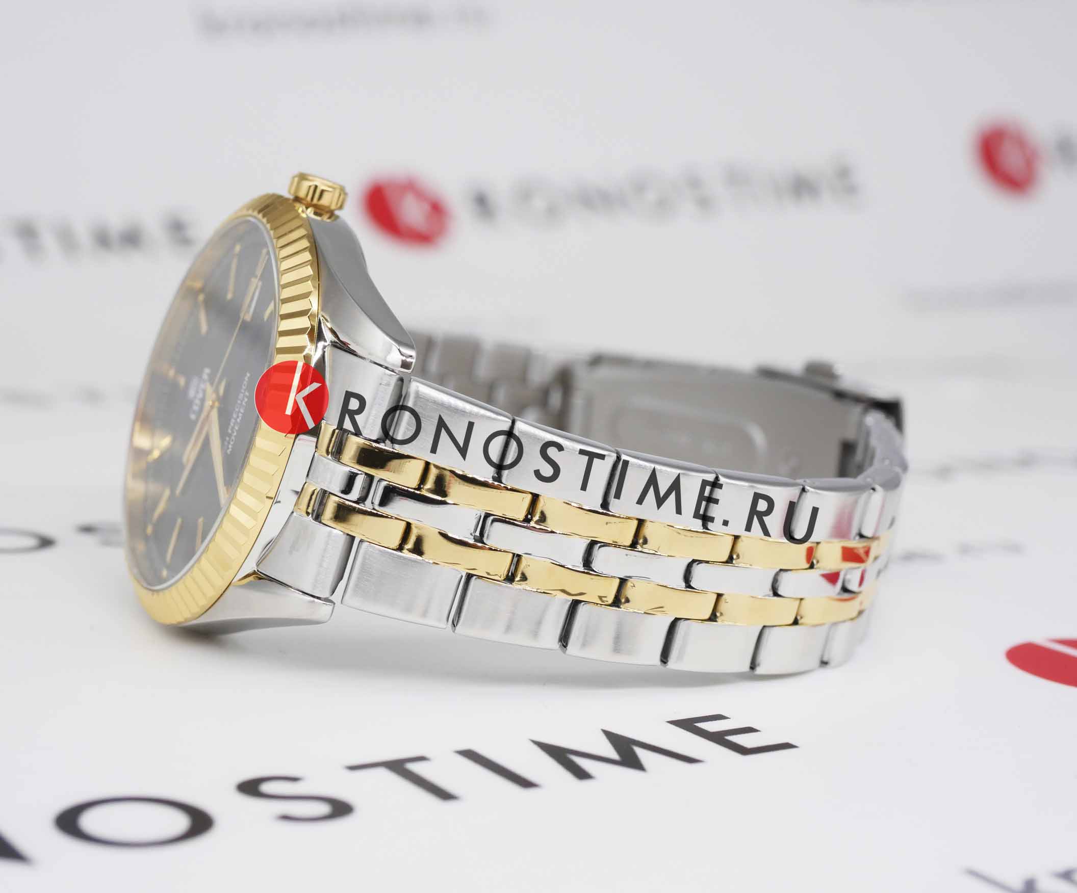 В основе работы часов лежит надежный кварцевый механизм ETA, известный своей исключительной точностью и долговечностью. Этот швейцарский калибр гарантирует стабильность хода и минимальную погрешность, а маркировка «Swiss Made» подтверждает соответствие высочайшим стандартам качества.
