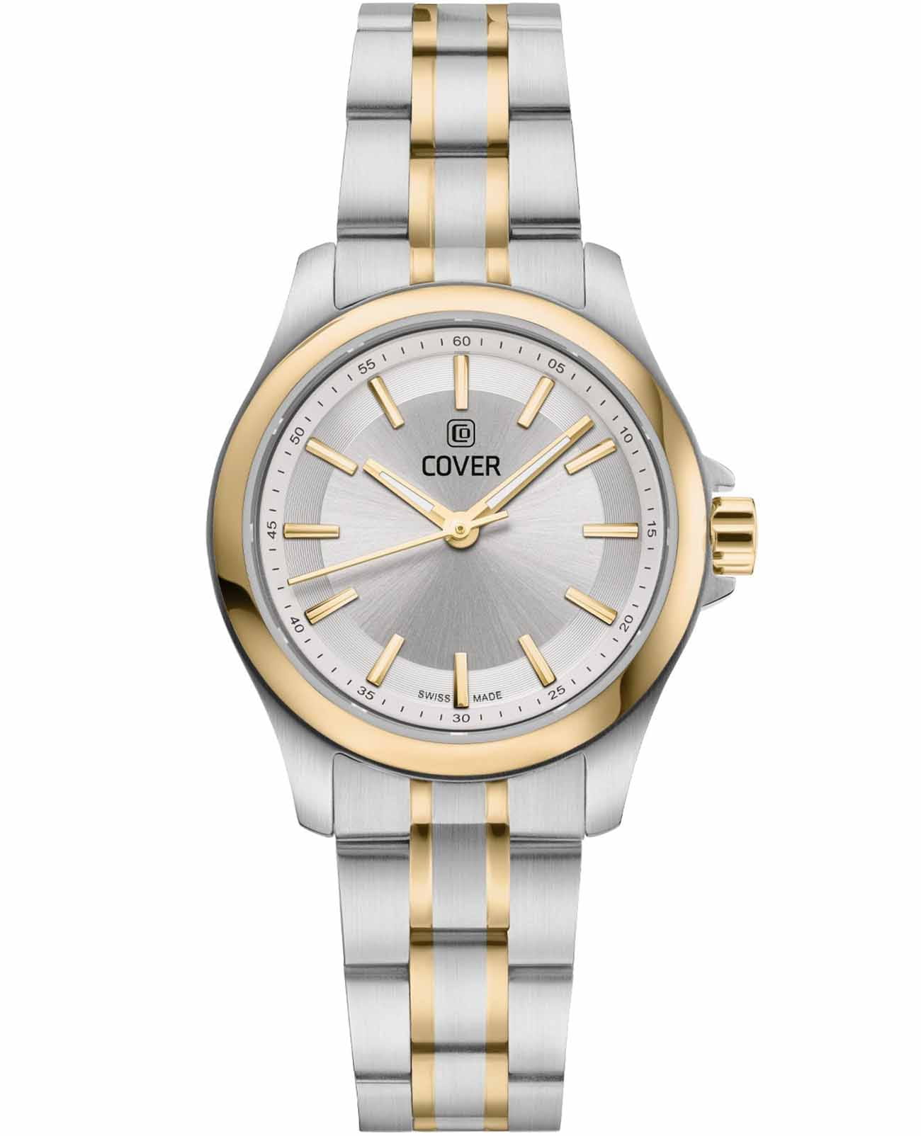 Cover CO215.06 из коллекции Marville – элегантные женские часы, сочетающие классический дизайн и современные технологии. Корпус диаметром 28 мм выполнен из нержавеющей, что обеспечивает прочность и долговечность. Серебристый циферблат с чёткими часовыми метками и стрелками, покрытыми люминесцентным покрытиемЛюминесцентное покрытиеПозволяет считывать показания времени в темноте. Производители наносят на стрелки, часовые индексы, безель или поверхность циферблата светонакопительный состав, дающий холодное свечение., гарантирует отличную читаемость в любых условиях, а его поверхность защищена сапфировым стекломСапфировое стеклоПрочный и надёжный материал из кристалла сапфира синтетического происхождения, характеризующийся особой твёрдостью и устойчивостью к царапинам и повреждениям., устойчивым к царапинам. Часы оснащены швейцарским кварцевым механизмом, обеспечивающим точный ход и надёжность. Браслет частично и безельБезельВнешний ободок, закрепляющий стекло. В спортивных часах так называется поворотное кольцо с делениями на циферблате, выполняет роль таймера – замеряет отрезки времени на шкале. Неподвижный безель – элемент декора. Однонаправленно вращающийся безель на дайверских часах позволяет фиксировать моменты погружения и выныривания на поверхность. изготовлены из нержавеющей стали с PVDPVDУльтратонкое покрытие наносится в технике вакуумного напыления, сочетает в себе нитрид титана особой прочности со слоем золота или оксида хрома. Несёт в себе декоративную или защитную функцию. цвета желтого золота, браслет также оснащён раскладной застёжкойРаскладная застёжкаТакой тип застёжки используется только на браслетах из металла. Она никогда не раскрывается полностью, происходит разделение на 2 и более частей. Раскладывающая застёжка снизит вероятность потери часов к минимуму., обеспечивающей удобную и надёжную фиксацию на запястье. Водонепроницаемость до 100 метров, позволит плавать, нырять и заниматься другими водными видами спорта.