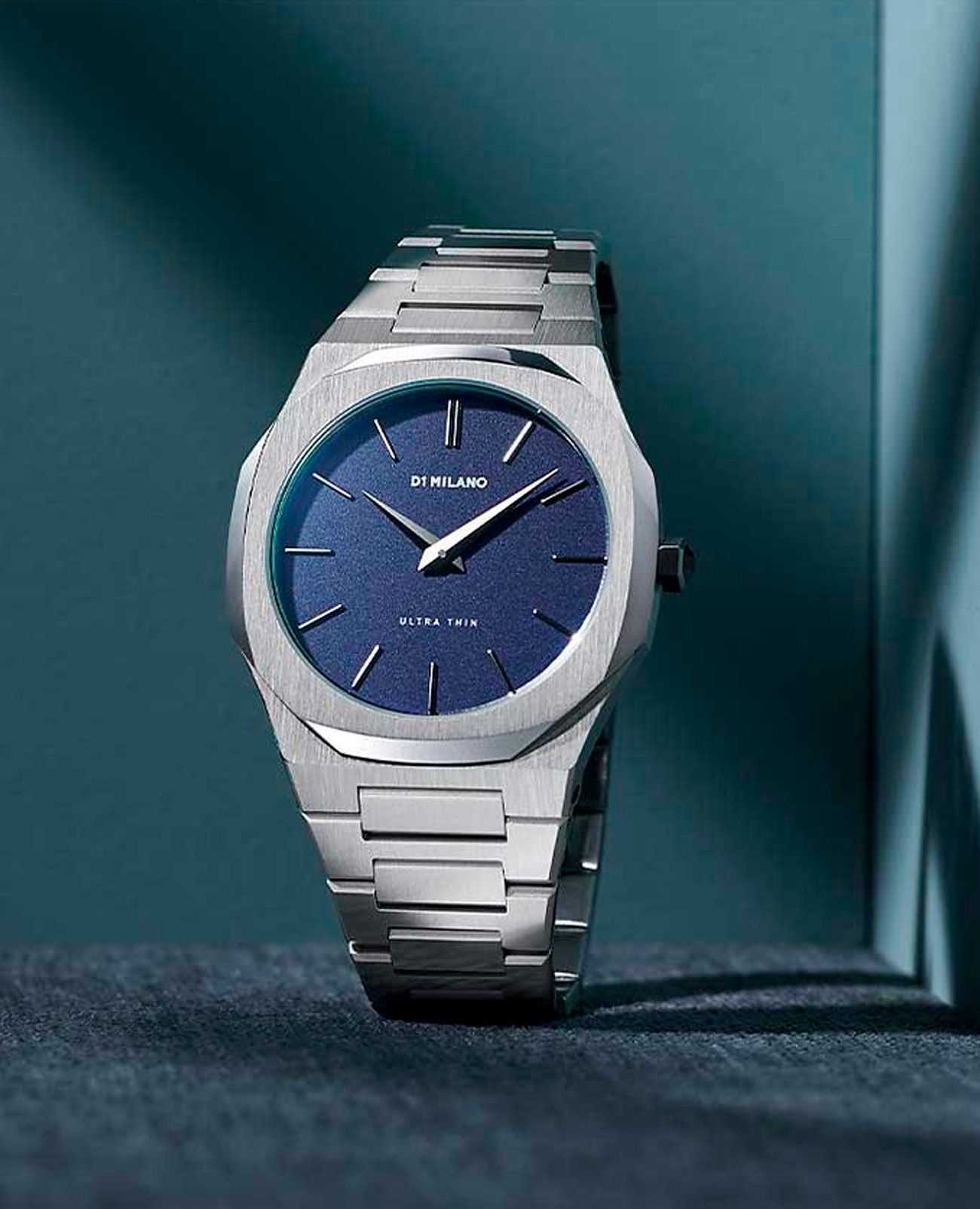Наручные часы D1 Milano UTBU01 из коллекции Ultra Thin сочетают в себе элегантный дизайн и современные технологии. Модель обладает круглым корпусом диаметром 38 мм, изготовленным из нержавеющей стали, что обеспечивает высокую устойчивость к внешним воздействиям. Для защиты циферблата используется сапфировое стеклоСапфировое стеклоПрочный и надёжный материал из кристалла сапфира синтетического происхождения, характеризующийся особой твёрдостью и устойчивостью к царапинам и повреждениям., которое эффективно противостоит царапинам и механическим повреждениям. Часы оснащены автоматическим механизмом Miyota 1L22. Водонепроницаемость модели достигает 5 атмосфер (50 метров), что позволяет использовать их при контакте с водой, например, во время мытья рук или дождя. Браслет выполнен из нержавеющей стали с раскладной застежкойРаскладной замокДанный вариант застежки используется только на часах с металлическим браслетом. Отличительная особенность такого крепления в том, что длина браслета становится универсальной и вы можете самостоятельно отрегулировать нужный вам размер – застежка просто двигается по браслету часов., обеспечивающей комфортное ношение и безопасность. Циферблат с метками в виде штрихов делает их идеальным выбором для повседневного использования или особых случаев.
