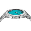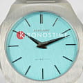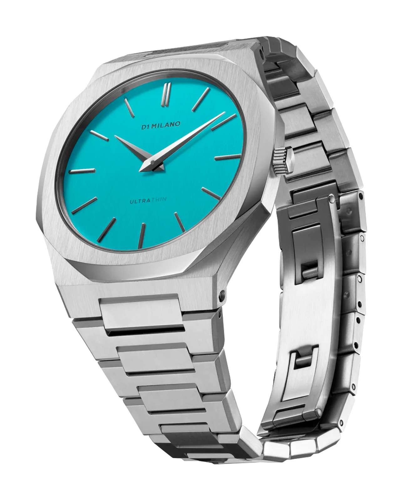 Наручные часы D1 Milano UTBU08 из коллекции Ultra Thin сочетают в себе современный дизайн и инновационные технологии. Модель обладает круглым корпусом диаметром 38 мм, выполненным из нержавеющей стали, что обеспечивает высокую устойчивость к внешним воздействиям. Циферблат светло-голубого цвета с текстурой "лен" создает элегантный и запоминающийся образ, подчеркивая уникальность модели среди других часов. Защиту циферблата обеспечивает сапфировое стеклоСапфировое стеклоПрочный и надёжный материал из кристалла сапфира синтетического происхождения, характеризующийся особой твёрдостью и устойчивостью к царапинам и повреждениям., известное своей устойчивостью к царапинам и высокой прозрачностью. Часы оснащены кварцевым механизмом Miyota 1L22, гарантирующим точность хода без необходимости подзаводки. Браслет выполнен из нержавеющей стали с полированной и матовой отделкой на раскладной застёжкеРаскладная застёжкаТакой тип застёжки используется только на браслетах из металла. Она никогда не раскрывается полностью, происходит разделение на 2 и более частей. Раскладывающая застёжка снизит вероятность потери часов к минимуму., что обеспечивает комфортное ношение на протяжении всего дня. Водонепроницаемость модели составляет 50 метров, что позволяет использовать часы в повседневной жизни, включая контакт с водой при мытье рук или дожде, однако не рекомендуется для погружений или активных водных видов спорта. Изготовленные в Италии, эти ультратонкие часы станут стильным аксессуаром, идеально дополняющим как деловой, так и casual-образ.