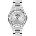 Женские кварцевые часы Daniel Klein — это роскошный аксессуар, подчеркивающий статус и безупречный вкус. Корпус диаметром 30 мм выполнен из нержавеющей стали. БезельБезельВнешний ободок, закрепляющий стекло. В спортивных часах так называется поворотное кольцо с делениями на циферблате, выполняет роль таймера – замеряет отрезки времени на шкале. Неподвижный безель – элемент декора. Однонаправленно вращающийся безель на дайверских часах позволяет фиксировать моменты погружения и выныривания на поверхность. инкрустирован кристаллами. Циферблат серебристого цвета выполнен по технологии Sunray («солнечные лучи») и оформлен точками с кристаллами и стрелками. Стрелки с люминесцентным покрытиемЛюминесцентное покрытиеПозволяет считывать показания времени в темноте. Производители наносят на стрелки, часовые индексы, безель или поверхность циферблата светонакопительный состав, дающий холодное свечение., обеспечивающим хорошую читаемость в темноте. Циферблат защищён минеральным стекломМинеральное стеклоМинеральное стекло представляет собой искусственно выращенный минерал кварца. Такое стекло отличается особой устойчивостью к повреждениям и царапинам. Уступает по некоторым качествам сапфировому стеклу.. Механизм — кварцевый калибр Miyota 2035. Часы оснащены стальным браслетом на раскладной застёжкеРаскладная застёжкаТакой тип застёжки используется только на браслетах из металла. Она никогда не раскрывается полностью, происходит разделение на 2 и более частей. Раскладывающая застёжка снизит вероятность потери часов к минимуму.. Водонепроницаемость 30 м позволяет использовать часы в повседневных условиях. Идеальный выбор для тех, кто ценит турецкое качество и элегантный дизайн.