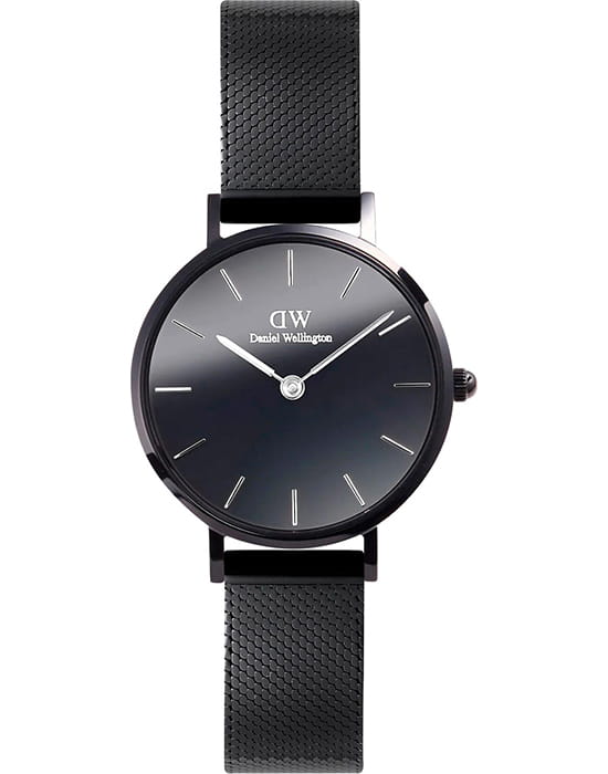 Daniel Wellington — женские часы, которые воплощают утончённый минимализм. Круглый корпус диаметром 28 мм выполнен из нержавеющей стали с глубоким чёрным PVDPVDУльтратонкое покрытие наносится в технике вакуумного напыления, сочетает в себе нитрид титана особой прочности со слоем золота или оксида хрома. Несёт в себе декоративную или защитную функцию.-покрытием, что придаёт образу современную строгость и элегантность.