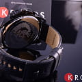 Точный кварцевый механизм. Центральная секундная стрелка. Минеральное стекло устойчивое к возникновению царапин. Светонакопительный состав на стрелках. Массивный корпус из высококачественной нержавеющей стали со стойким PVD покрытием. Водозащита до 10 АТМ. Ремешок из натуральной кожи черного цвета. Часы оснащены хронографом.