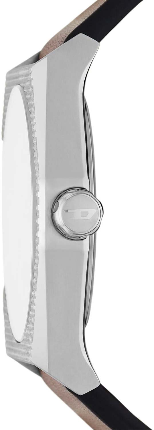 Мужские наручные часы с минеральным стекломМинеральное стеклоМинеральное стекло представляет собой искусственно выращенный минерал кварца. Такое стекло отличается особой устойчивостью к повреждениям и царапинам. Уступает по некоторым качествам сапфировому стеклу. Diesel Scraper DZ2174, кварцевый механизм с высокой точностью. Класс водозащиты: 50 метров, позволит защитить корпус от случайных брызг или капель дождя. Круглый корпус часов изготовлен из стали. Кожаный ремешок на стандартной застёжке. Метки в виде штрихов и арабских цифр. Циферблат выполнен по технологии Sunray (солнечные лучи). Стрелки и метки с люминесцентным покрытиемЛюминесцентное покрытиеПозволяет считывать показания времени в темноте. Производители наносят на стрелки, часовые индексы, безель или поверхность циферблата светонакопительный состав, дающий холодное свечение..