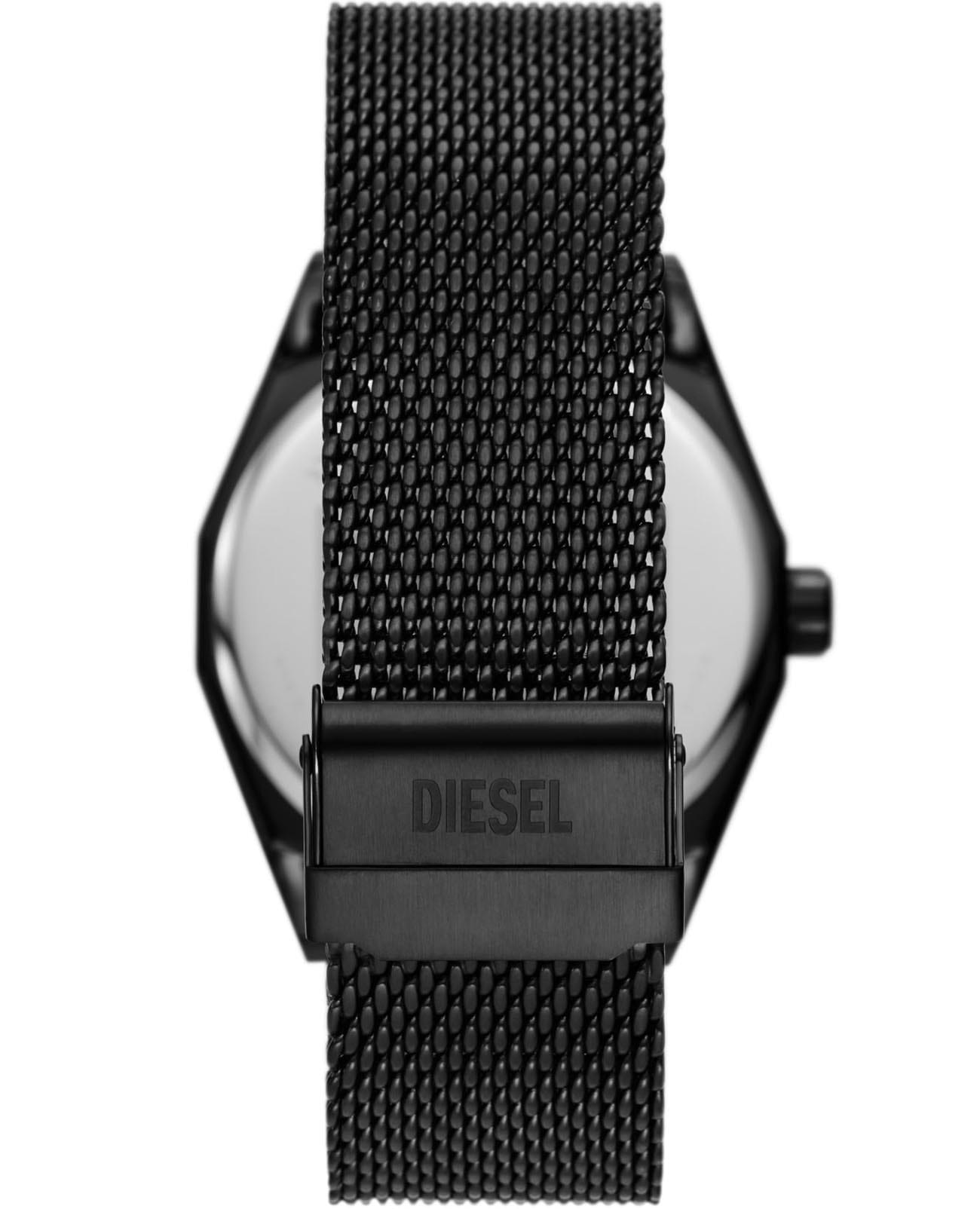 Мужские наручные часы с минеральным стекломМинеральное стеклоМинеральное стекло представляет собой искусственно выращенный минерал кварца. Такое стекло отличается особой устойчивостью к повреждениям и царапинам. Уступает по некоторым качествам сапфировому стеклу. Diesel Scraper DZ2194, кварцевый механизм с высокой точностью. Класс водозащиты: 50 метров, позволит защитить корпус от случайных брызг или капель дождя. Корпус и браслет часов изготовлены из нержавеющей стали с IP-покрытиемIP-покрытиеМетод ионного напыления. Демонстрирует повышенную устойчивость к истиранию, окислению и химическим веществам. Под воздействием высокого давления и температуры около 1500°C молекулы металла надёжно соединяются с частицами корпуса часов.. Стальной браслет на раскладном замкеРаскладной замокДанный вариант застежки используется только на часах с металлическим браслетом. Отличительная особенность такого крепления в том, что длина браслета становится универсальной и вы можете самостоятельно отрегулировать нужный вам размер – застежка просто двигается по браслету часов.. Метки в виде штрихов и арабских цифр. Циферблат выполнен по технологии Sunray (солнечные лучи). Стрелки и метки с люминесцентным покрытиемЛюминесцентное покрытиеПозволяет считывать показания времени в темноте. Производители наносят на стрелки, часовые индексы, безель или поверхность циферблата светонакопительный состав, дающий холодное свечение..
