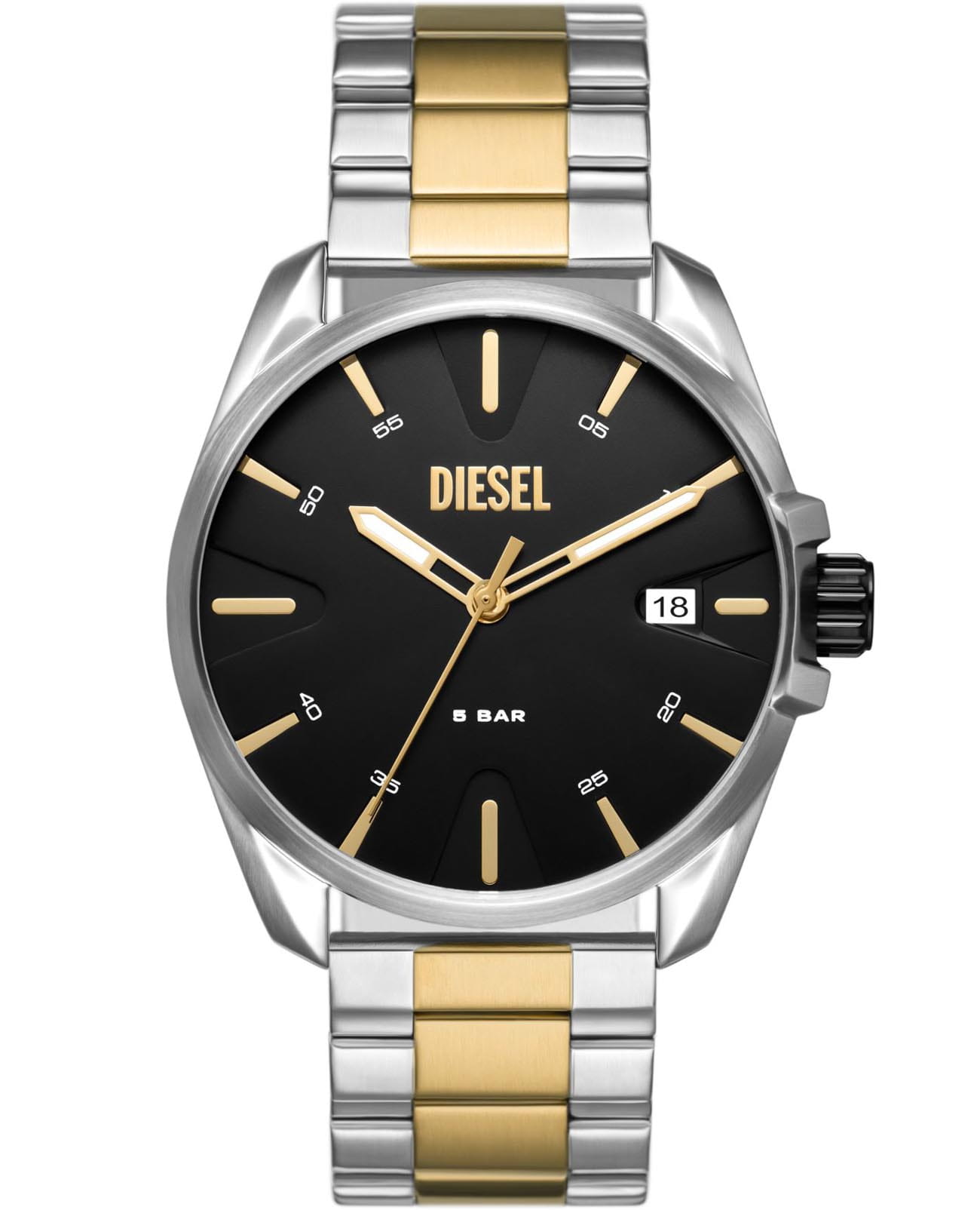 Мужские наручные часы Diesel MS9 DZ2196, кварцевый механизм с высокой точностью. Класс водозащиты: 50 метров, позволит защитить корпус от случайных брызг или капель дождя. Стрелки с люминесцентным покрытиемЛюминесцентное покрытиеПозволяет считывать показания времени в темноте. Производители наносят на стрелки, часовые индексы, безель или поверхность циферблата светонакопительный состав, дающий холодное свечение.. Класс водозащиты: 50 метров, позволит защитить корпус от случайных брызг или капель дождя. Корпус часов изготовлен из нержавеющей стали. Рифленая заводная головка. Минеральное стеклоМинеральное стеклоМинеральное стекло представляет собой искусственно выращенный минерал кварца. Такое стекло отличается особой устойчивостью к повреждениям и царапинам. Уступает по некоторым качествам сапфировому стеклу., устойчивое к мелким механическим поврждениям. Стальной браслет с частичным IP-покрытиемIP-покрытиеМетод ионного напыления. Демонстрирует повышенную устойчивость к истиранию, окислению и химическим веществам. Под воздействием высокого давления и температуры около 1500°C молекулы металла надёжно соединяются с частицами корпуса часов. на раскладной застёжкеРаскладная застёжкаТакой тип застёжки используется только на браслетах из металла. Она никогда не раскрывается полностью, происходит разделение на 2 и более частей. Раскладывающая застёжка снизит вероятность потери часов к минимуму..
