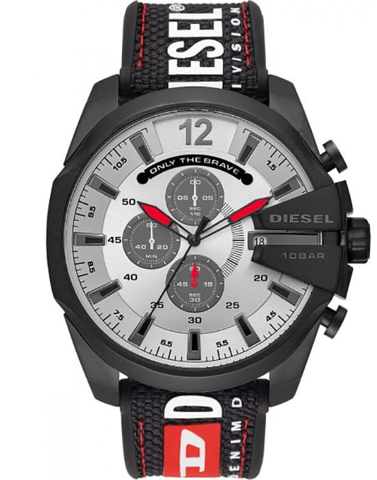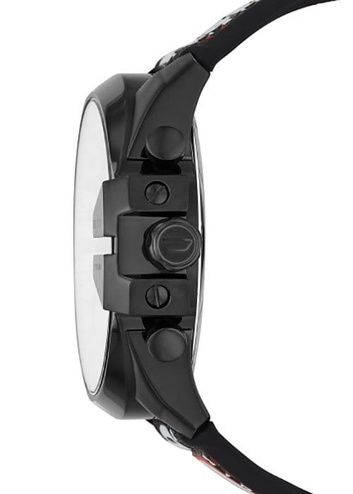 Кварцевый хронографХронографФункция позволяет измерять отрезки времени с особой точностью: часы, минуты, секунды. Верным признаком хронографа является наличие на циферблате 3 дополнительных окошек-счётчиков. отражает спортивный стиль с акцентом на необычных формах и красных деталях. Комфортное ношение обеспечивается благодаря нейлоновому ремешку на силиконовой основе. Минеральное стекло препятствует образованию царапин. Корпус из хирургической стали 316L с тёмно-серым IP-покрытиемIP-покрытиеМетод ионного напыления. Демонстрирует повышенную устойчивость к истиранию, окислению и химическим веществам. Под воздействием высокого давления и температуры около 1500°C молекулы металла надёжно соединяются с частицами корпуса часов.. Заводная головка с системой защиты. Водонепроницаемость до 10 бар. Секундомер, отображение даты. Габариты: 55 x 51 x 14 мм.
