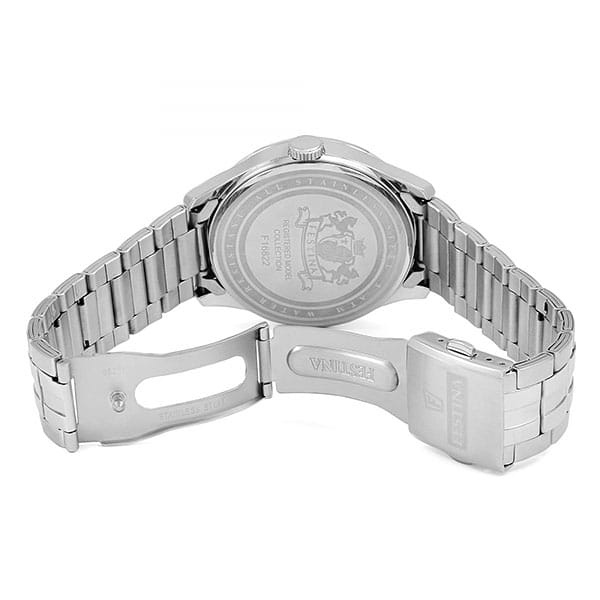 Модный дизайн этого мужского аксессуара заставит изменить ваше представление о повседневном образе. Кварцевый механизм с высокой точностью. Минеральное стеклоМинеральное стеклоМинеральное стекло представляет собой искусственно выращенный минерал кварца. Такое стекло отличается особой устойчивостью к повреждениям и царапинам. Уступает по некоторым качествам сапфировому стеклу. устойчивое к появлению царапин, обладающее высокой прозрачностью. Класс водозащиты: 50 метров, позволит защитить корпус от случайных брызг или капель дождя. Метки в виде штрихов. 12-ти и 24-х часовой формат времени, дата и день недели вынесены на отдельные циферблаты. Стрелки с частично удаленным металлом и метки с нанесенным люминесцентным покрытиемЛюминесцентное покрытиеПозволяет считывать показания времени в темноте. Производители наносят на стрелки, часовые индексы, безель или поверхность циферблата светонакопительный состав, дающий холодное свечение., которое светится в темноте после непродолжительной зарядки на свету. Корпус часов изготовлен из нержавеющей стали 316L. Браслет с раскладной застёжкойРаскладная застёжкаТакой тип застёжки используется только на браслетах из металла. Она никогда не раскрывается полностью, происходит разделение на 2 и более частей. Раскладывающая застёжка снизит вероятность потери часов к минимуму..