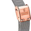 Женские механические часы-скелетоны Festina Automatic F20581/1, механический механизм (автоматический калибр) с высокой точностью. Сапфировое стеклоСапфировое стеклоПрочный и надёжный материал из кристалла сапфира синтетического происхождения, характеризующийся особой твёрдостью и устойчивостью к царапинам и повреждениям. устойчивое к появлению царапин, обладающее высокой прозрачностью. Класс водозащиты: 50 метров, позволит защитить корпус от случайных брызг или капель дождя. Корпус часов изготовлен из стали с PVD-покрытиемPVDУльтратонкое покрытие наносится в технике вакуумного напыления, сочетает в себе нитрид титана особой прочности со слоем золота или оксида хрома. Несёт в себе декоративную или защитную функцию.. Стальной миланского плетения браслет на раскладной застёжкеРаскладная застёжкаТакой тип застёжки используется только на браслетах из металла. Она никогда не раскрывается полностью, происходит разделение на 2 и более частей. Раскладывающая застёжка снизит вероятность потери часов к минимуму.. БезельБезельВнешний ободок, закрепляющий стекло. В спортивных часах так называется поворотное кольцо с делениями на циферблате, выполняет роль таймера – замеряет отрезки времени на шкале. Неподвижный безель – элемент декора. Однонаправленно вращающийся безель на дайверских часах позволяет фиксировать моменты погружения и выныривания на поверхность. с PVD-покрытиемPVDУльтратонкое покрытие наносится в технике вакуумного напыления, сочетает в себе нитрид титана особой прочности со слоем золота или оксида хрома. Несёт в себе декоративную или защитную функцию.. Циферблат с метками в виде штрихов и арабских цифр. Рифленая заводная головка.