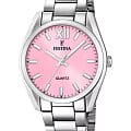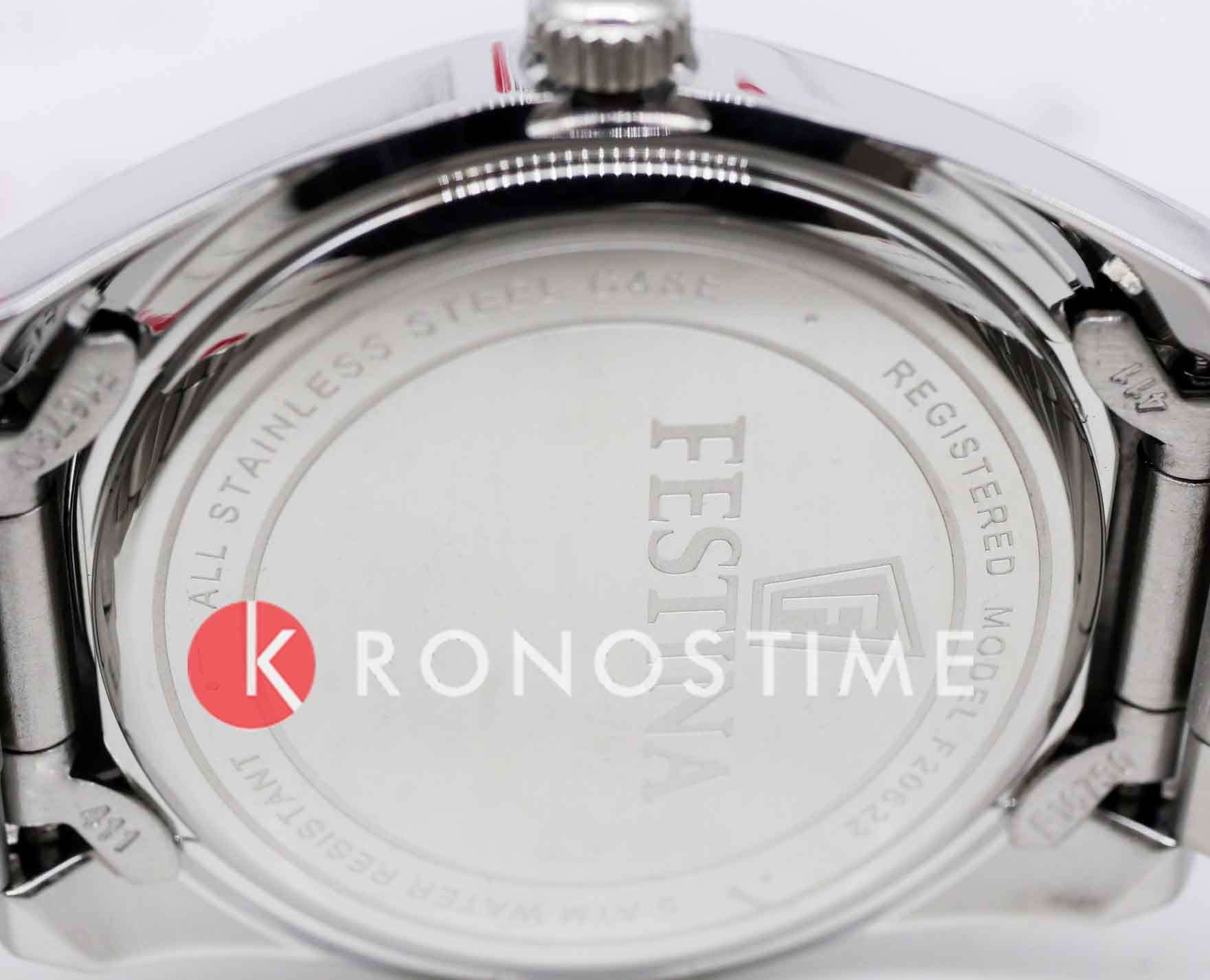 Наручные женские часы с минеральным стекломМинеральное стеклоМинеральное стекло представляет собой искусственно выращенный минерал кварца. Такое стекло отличается особой устойчивостью к повреждениям и царапинам. Уступает по некоторым качествам сапфировому стеклу. Festina F20622.M, кварцевый механизм с высокой точностью. Класс водозащиты: 50 метров, позволит защитить корпус от случайных брызг или капель дождя. Корпус часов изготовлен из стали. Стальной браслет на раскладной застёжкеРаскладная застёжкаТакой тип застёжки используется только на браслетах из металла. Она никогда не раскрывается полностью, происходит разделение на 2 и более частей. Раскладывающая застёжка снизит вероятность потери часов к минимуму.. Стрелки и метки с люминесцентным покрытиемЛюминесцентное покрытиеПозволяет считывать показания времени в темноте. Производители наносят на стрелки, часовые индексы, безель или поверхность циферблата светонакопительный состав, дающий холодное свечение..