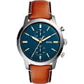 Наручные часы от популярного американского бренда Fossil - они будут замечательно смотреться как с повседневным стилем одежды, так и костюмом;  браслет: кожа; корпус: сталь; цвет браслета: коричневый; цвет корпуса: серебро; цвет циферблата: синий; ширина браслета: 22MM;