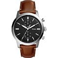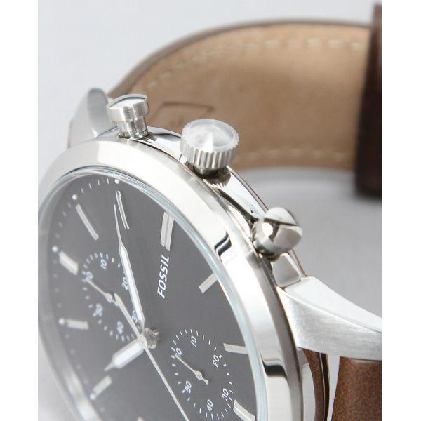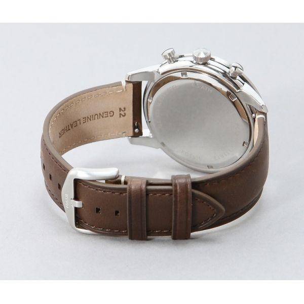 Наручные часы от популярного американского бренда Fossil - они будут замечательно смотреться как с повседневным стилем одежды, так и костюмом;  браслет: кожа; корпус: сталь; цвет браслета: темно-коричневый; цвет корпуса: серебро; цвет циферблата: черный; ширина браслета: 22MM;
