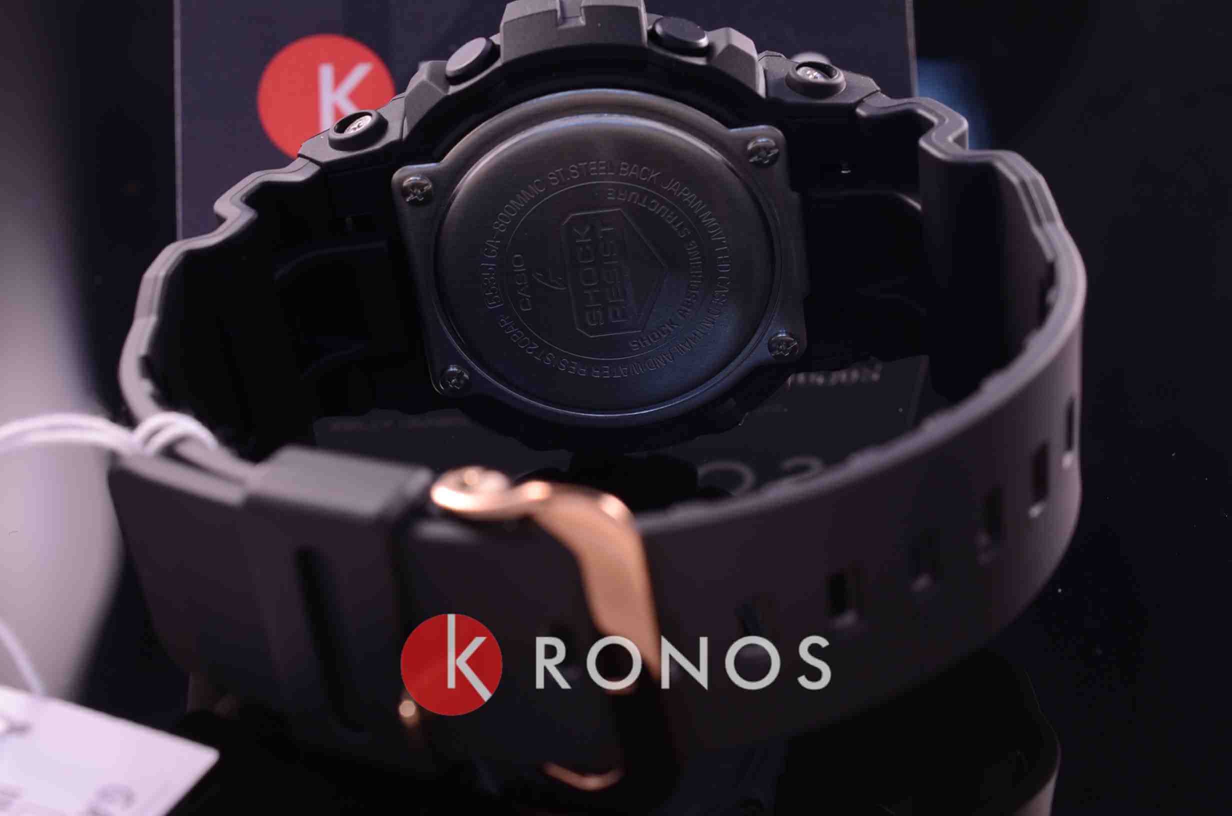 Дизайн модели умело комбинирует спортивные и fashion-элементы, чёрный матовый противоударный корпусУдаропрочный корпусМеханизм заключён в корпус, выполненный из современных материалов, устойчивых к ударам, механическим повреждениям и падению с высоты: инновационный пластик, карбон, нержавеющая сталь, титан. красиво обрамляет металлизированный циферблат цвета розового золота. По сравнению с часами серии GA-700, аксессуар получил уменьшенный размер корпуса, что положительно сказалось на комфортном ношении. Кварцевый калибр японского производства работает от батарейки, срок её службы составляет 3 года. Белая светодиодная подсветкаСветодиодная подсветкаСветодиодная или LED-подсветка обеспечивает появление яркого холодного свечения за счёт LED-элементов - маленьких лампочек. Они потребляют минимальное количество энергии, чаще всего можно встретить 1 светодиод, в нижней части циферблата. циферблата, стрелки с люминесцентным покрытиемЛюминесцентное покрытиеПозволяет считывать показания времени в темноте. Производители наносят на стрелки, часовые индексы, безель или поверхность циферблата светонакопительный состав, дающий холодное свечение.. Прочный полимерный ремешок. Водонепроницаемость 20 бар. Минеральное стекло. 12/24-часовое отображение времени. Секундомер с точностью в 1/100 секунды, мировое времяМировое время Полезное часовое усложнение, отображающее время в основных городах и известных областях по всему миру, оно связано с часовыми поясами, удобно для путешественников и бизнесменов. , таймер, будильник, календарь. Габариты: 54,1 x 48,6 x 15,5 мм.