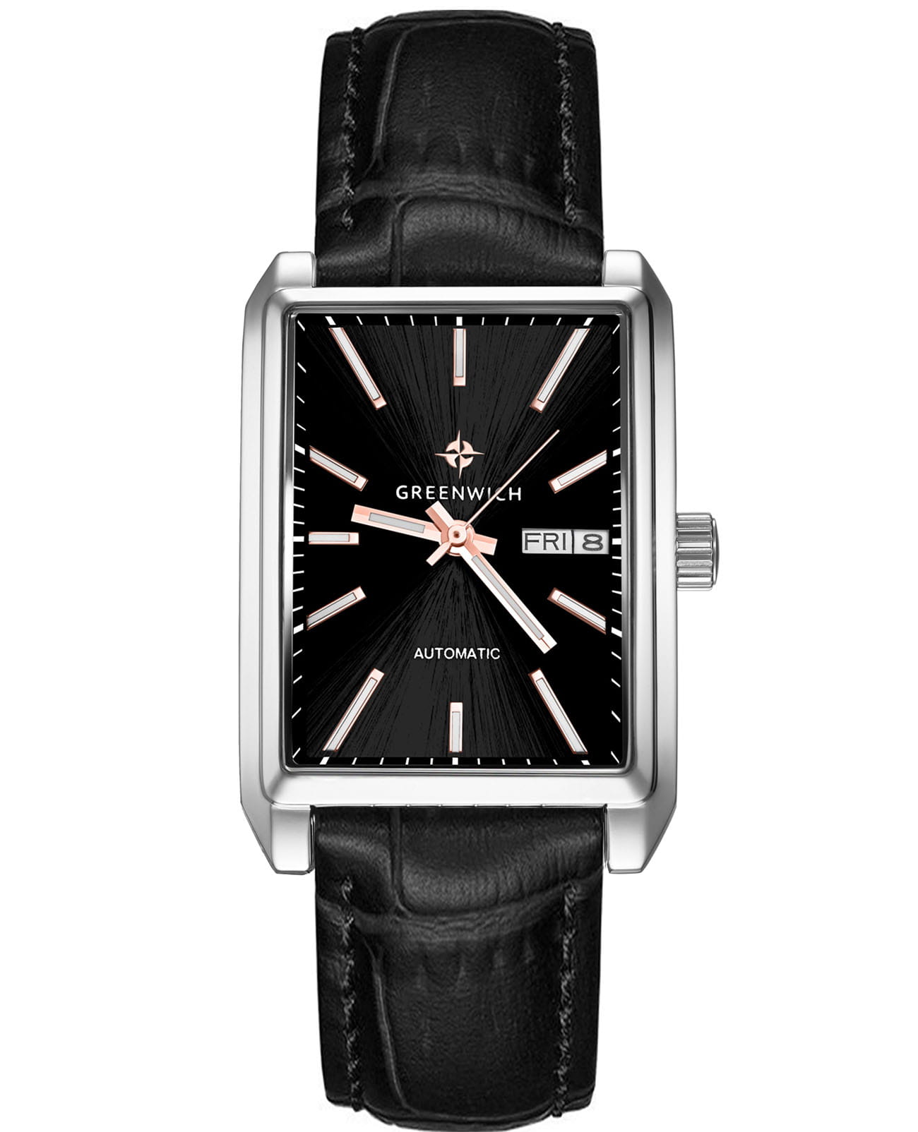 Мужские часы с минеральным стекломМинеральное стеклоМинеральное стекло представляет собой искусственно выращенный минерал кварца. Такое стекло отличается особой устойчивостью к повреждениям и царапинам. Уступает по некоторым качествам сапфировому стеклу. Greenwich Caravel GW 564.11.15, представляют собой классический вариант для повседневной носки. Корпус часов выполнен из нержавеющей стали. Окошко даты и дня недели находится в положении 3 часа. Стрелки с люминесцентным покрытиемЛюминесцентное покрытиеПозволяет считывать показания времени в темноте. Производители наносят на стрелки, часовые индексы, безель или поверхность циферблата светонакопительный состав, дающий холодное свечение.. Кожаный ремешок на стандартной застежке.