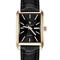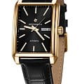 Часы Greenwich GW 564.21.11 из коллекции Caravel — элегантная мужская модель, сочетающая классический дизайн и современные технологии. Корпус размером 33 x 40 мм выполнен из гипоаллергенной нержавеющей стали с PVD-покрытиемPVDУльтратонкое покрытие наносится в технике вакуумного напыления, сочетает в себе нитрид титана особой прочности со слоем золота или оксида хрома. Несёт в себе декоративную или защитную функцию. из жёлтого золота. Чёрный циферблат с люминесцентными стрелками и часовыми метками для удобного считывания в темноте защищён минеральным стекломМинеральное стеклоМинеральное стекло представляет собой искусственно выращенный минерал кварца. Такое стекло отличается особой устойчивостью к повреждениям и царапинам. Уступает по некоторым качествам сапфировому стеклу.. Дополнительно на циферблате отображаются дата и день недели в положении «3 часа».