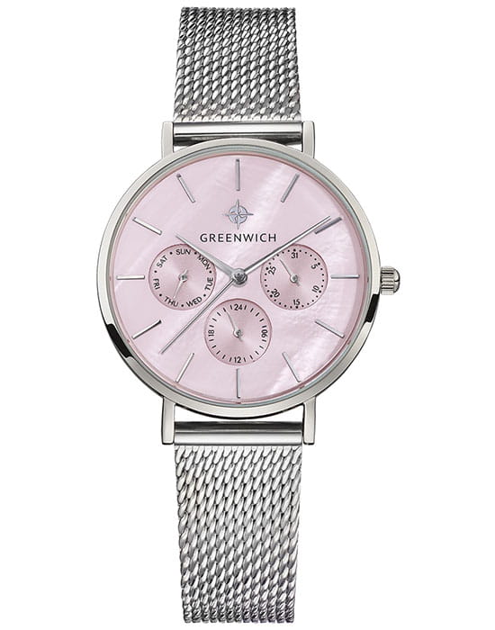 Женские наручные часы Greenwich GW 307.10.55 помогут дополнить образ элегантной особы, модель в лаконичном исполнении подойдёт для повседневной носки. Классический стиль перекликается с дизайнерскими решениями, позволяя экспериментировать с одеждой. Минималистичный циферблат украшен эмблемой в виде Розы Ветров, являющейся символом удачи и поддержки во всех начинаниях. Часы имеют прочный корпус из стали 316L, характеризующейся устойчивостью к коррозии. Высокая точность хода обеспечивается за счёт работы японского механизма. Минеральное стекло препятствует появлению царапин.