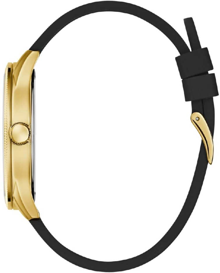 Элегантные женские наручные часы Guess GW0887G2 сочетают в себе стиль и функциональность. Эти часы оснащены точным кварцевым механизмом, что гарантирует надежность и долговечность. Корпус часов выполнен из прочной нержавеющей стали с IP-покрытиемIP-покрытиеМетод ионного напыления. Демонстрирует повышенную устойчивость к истиранию, окислению и химическим веществам. Под воздействием высокого давления и температуры около 1500°C молекулы металла надёжно соединяются с частицами корпуса часов. золотистого цвета, диаметром 44 мм и толщиной 10 мм, придающий им роскошный вид. Фактурный циферблат без меток дополнен логотипом бренда. Часы оснащены силиконовым ремешком на стандартной застёжке, которая обеспечивает комфортное прилегание к запястью и надежную фиксацию.  Люминесцентное покрытиеЛюминесцентное покрытиеПозволяет считывать показания времени в темноте. Производители наносят на стрелки, часовые индексы, безель или поверхность циферблата светонакопительный состав, дающий холодное свечение. на стрелках обеспечивает отличную видимость в темноте. Минеральное стеклоМинеральное стеклоМинеральное стекло представляет собой искусственно выращенный минерал кварца. Такое стекло отличается особой устойчивостью к повреждениям и царапинам. Уступает по некоторым качествам сапфировому стеклу. защищает циферблат от царапин и повреждений, сохраняя его безупречный вид. Водозащита 30WR гарантирует защиту от случайных брызг и дождя, что делает эти часы практичным аксессуаром для повседневной жизни. Рифленая заводная головка с защитой. Guess – это не просто аксессуар, это заявление о вашем безупречном вкусе и стремлении к совершенству.