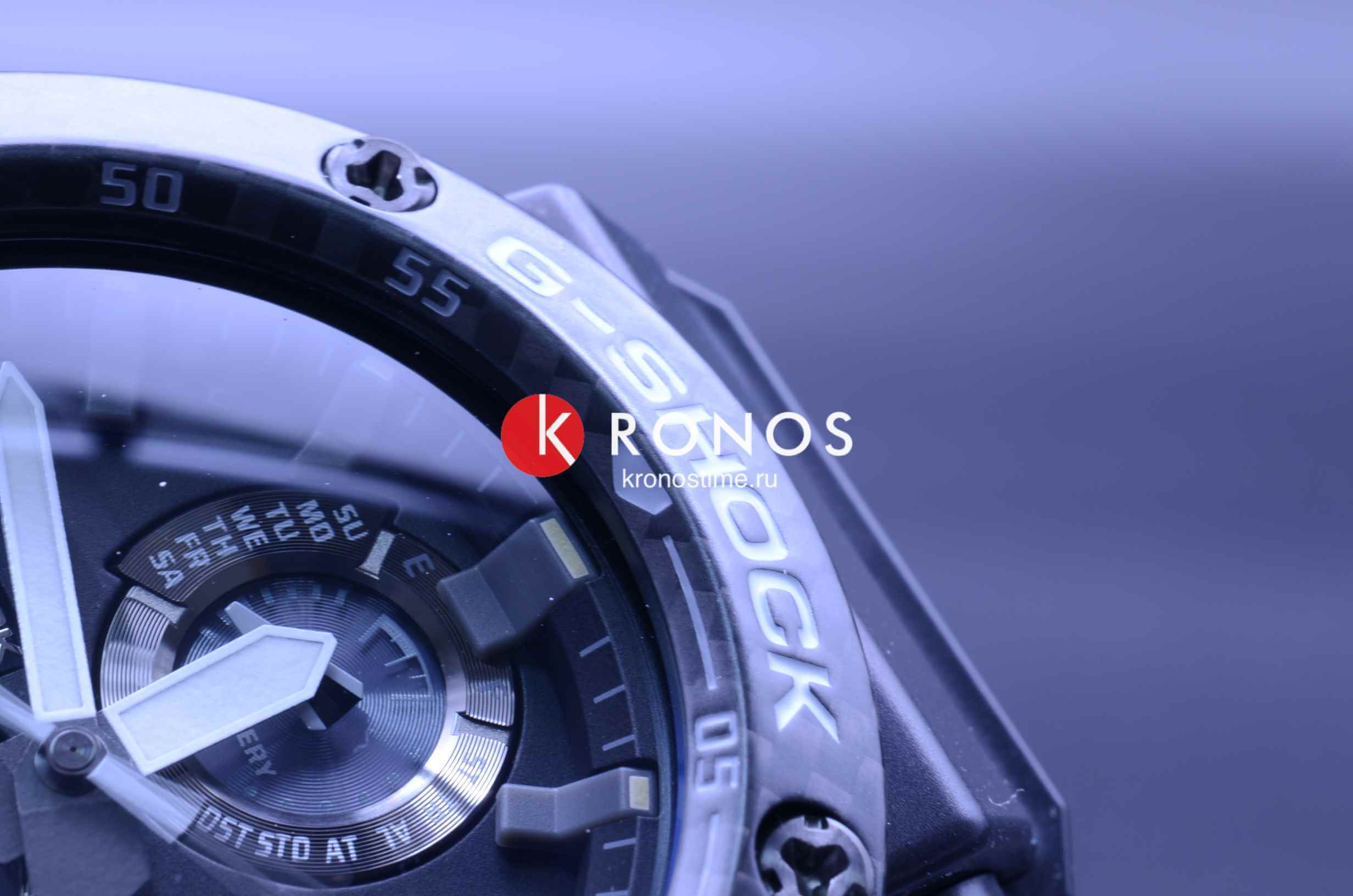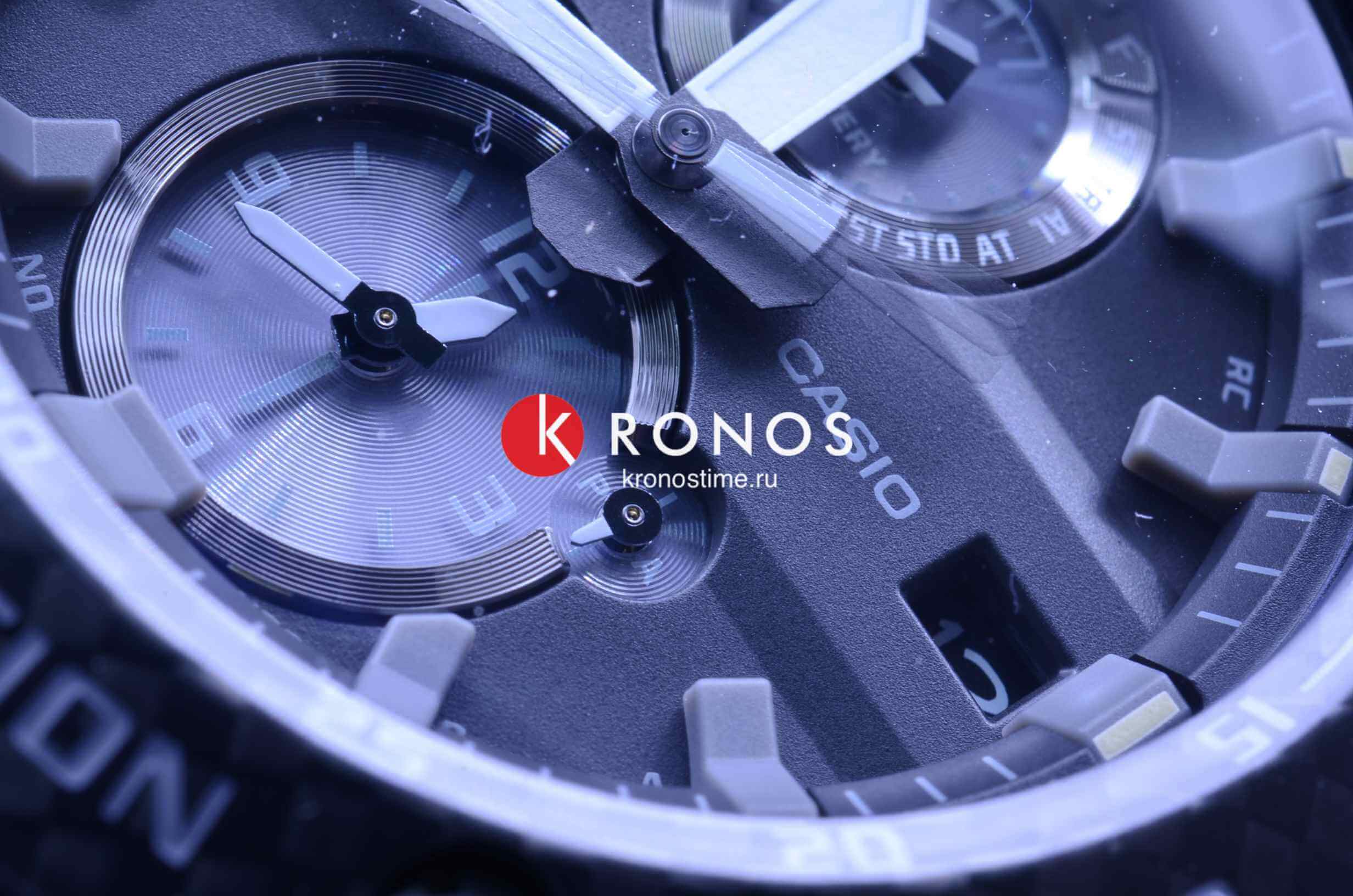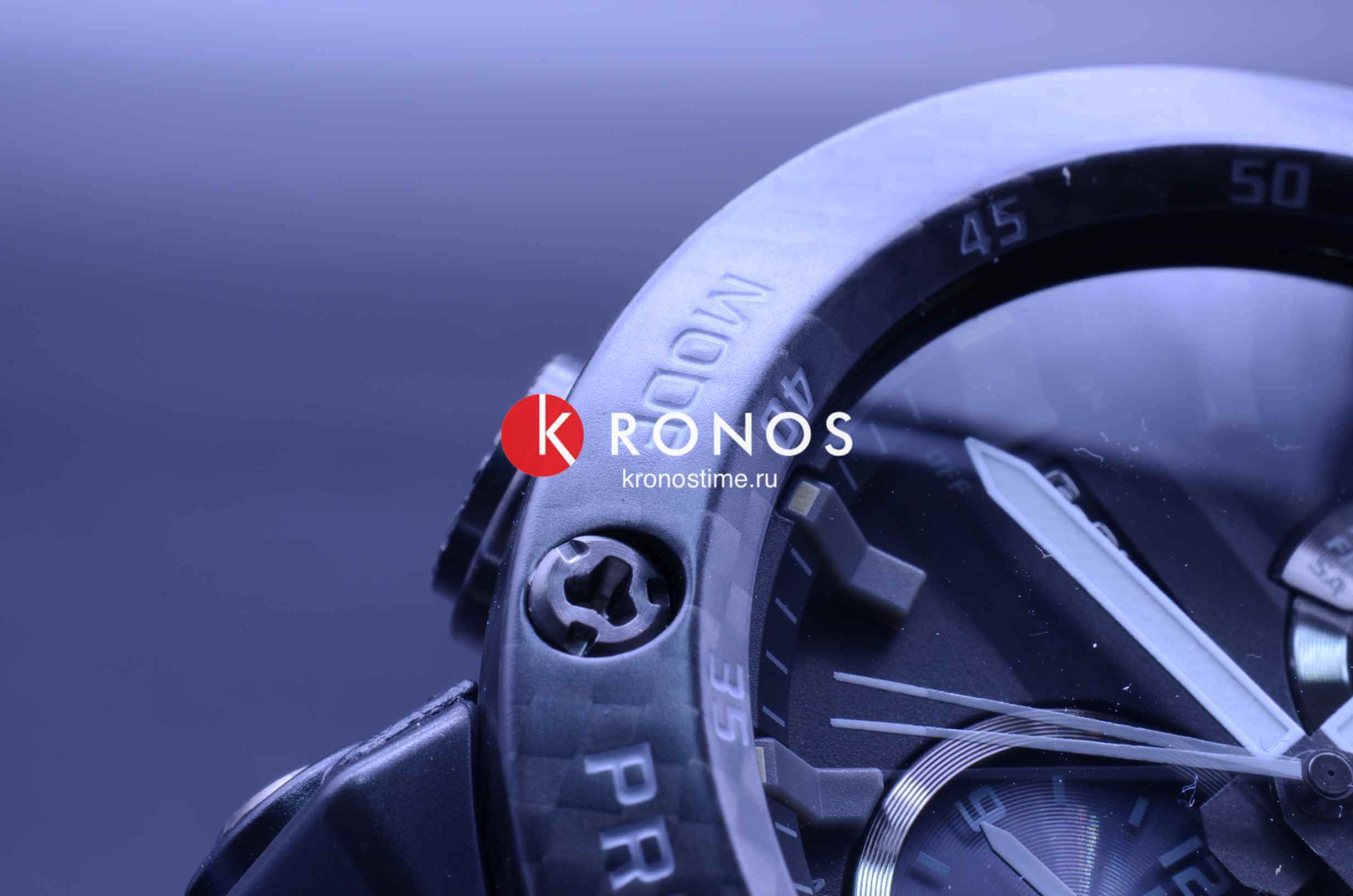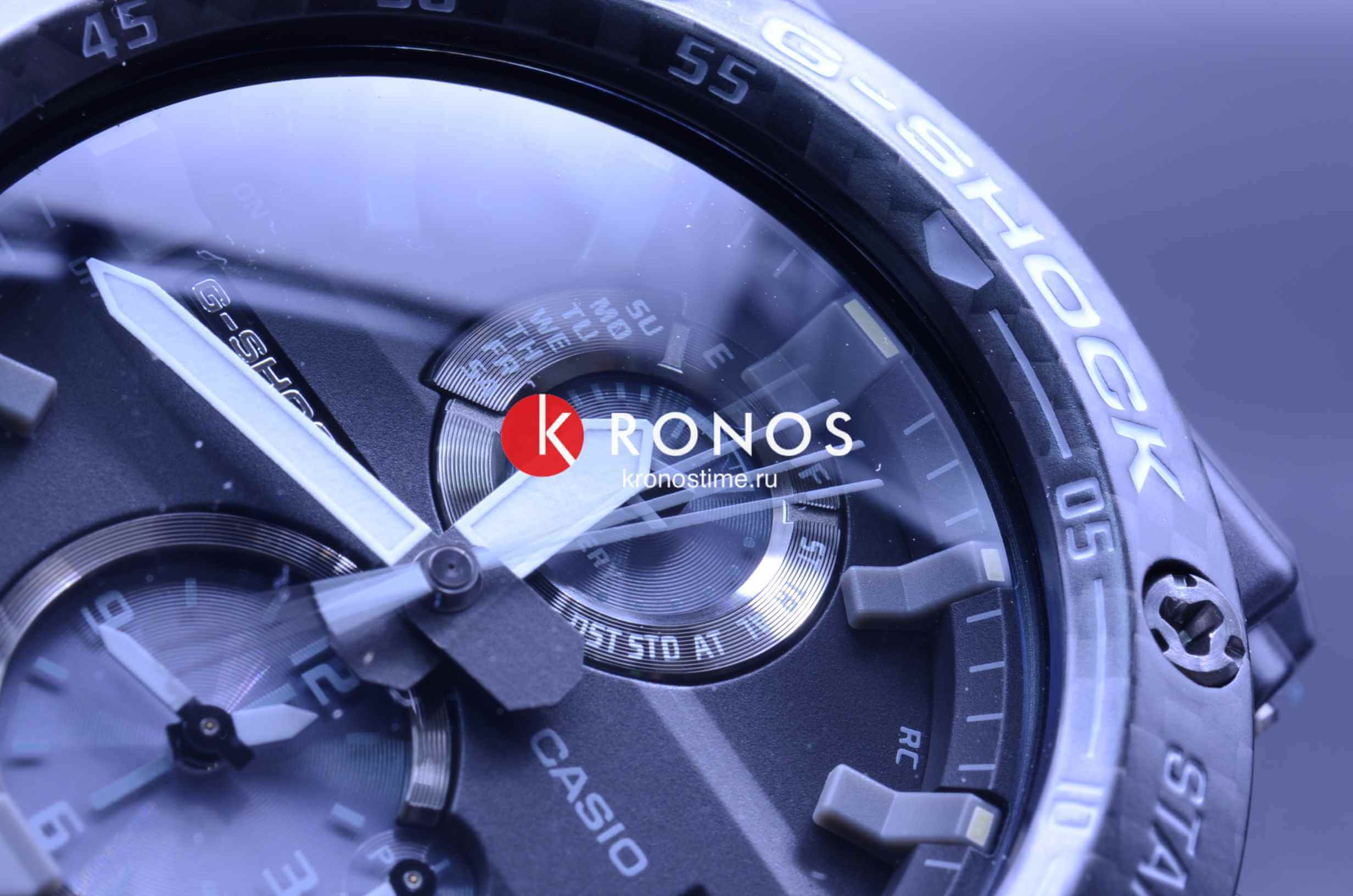Внушительный аксессуар стильно смотрится на широком запястье, гармонично смотрятся крупные детали и общее тёмное исполнение. Задняя крышка здесь отсутствует, ударопрочный корпусУдаропрочный корпусМеханизм заключён в корпус, выполненный из современных материалов, устойчивых к ударам, механическим повреждениям и падению с высоты: инновационный пластик, карбон, нержавеющая сталь, титан. сделан из монолитного углеродного монокока, вдохновлённого конструкцией ранних самолётов. Он состоит из 52 карбоновых слоёв, уникальная текстура просматривается на боковых частях безеляБезельВнешний ободок, закрепляющий стекло. В спортивных часах так называется поворотное кольцо с делениями на циферблате, выполняет роль таймера – замеряет отрезки времени на шкале. Неподвижный безель – элемент декора. Однонаправленно вращающийся безель на дайверских часах позволяет фиксировать моменты погружения и выныривания на поверхность. – с успехом реализована технология Carbon Core GuardCarbon Core Guard Новейшая структура корпуса, разработанная Casio. Полиуретановая пластина дополнительно усилена карбоновыми вставками, что придаёт специальную защиту от механических повреждений. Карбон отличается лёгкостью и прочностью.. Полимерный ремешок тоже имеет усиление карбоновыми волокнами. Наручные часы обладают полезным функционалом: BluetoothBluetoothСовременная технология, позволяющая синхронизировать часы с телефоном и переносить данные. Часы с Bluetooth расширяют возможности вашего смартфона и делают его использование ещё более удобным., будильник, мировое времяМировое время Полезное часовое усложнение, отображающее время в основных городах и известных областях по всему миру, оно связано с часовыми поясами, удобно для путешественников и бизнесменов. , таймер, приём радиосигнала, питание от солнечной батареи . Сапфировое стекло с антибликовой обработкой. Яркая люминесцентная подсветкаЛюминесцентное покрытиеПозволяет считывать показания времени в темноте. Производители наносят на стрелки, часовые индексы, безель или поверхность циферблата светонакопительный состав, дающий холодное свечение.. Габариты: 50,1 x 46,4 x 16,9 мм.