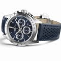 Модели из линии Jazzmaster Performer, привлекающие внимание ярким дизайном в стиле спортивный шик, сочетают в себе функциональность и эстетичность. Часы Jazzmaster Performer Automatic Chronograph оснащены автоматическим механизмом хронографаХронографФункция позволяет измерять отрезки времени с особой точностью: часы, минуты, секунды. Верным признаком хронографа является наличие на циферблате 3 дополнительных окошек-счётчиков. H-31 с 60-часовым запасом хода. Модель в корпусе из нержавеющей стали диаметром 42 мм имеет изящный синий циферблат и сочетающийся с ним перфорированный синий кожаный ремешок в гоночном стиле.