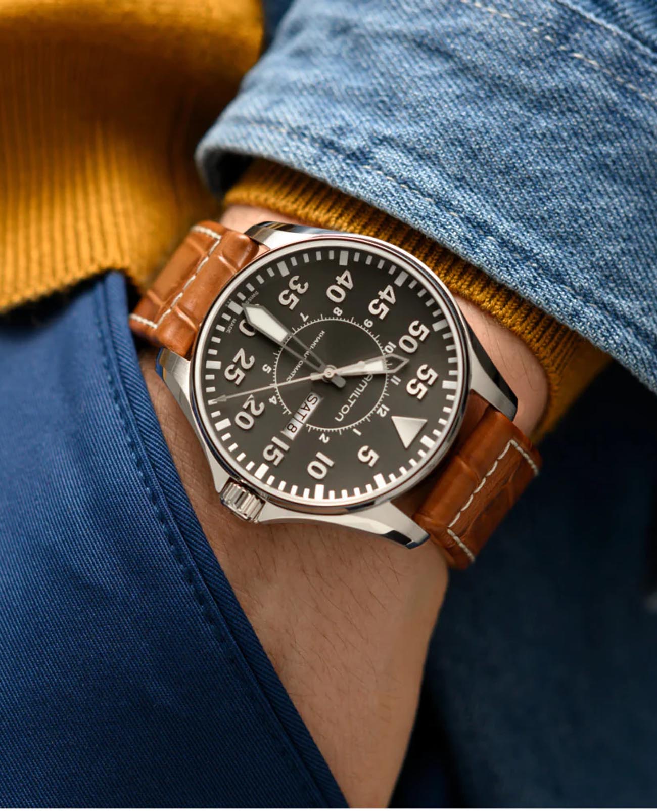 Швейцарские мужские механические часы Hamilton Khaki Aviation Pilot Day Date Auto H64715885