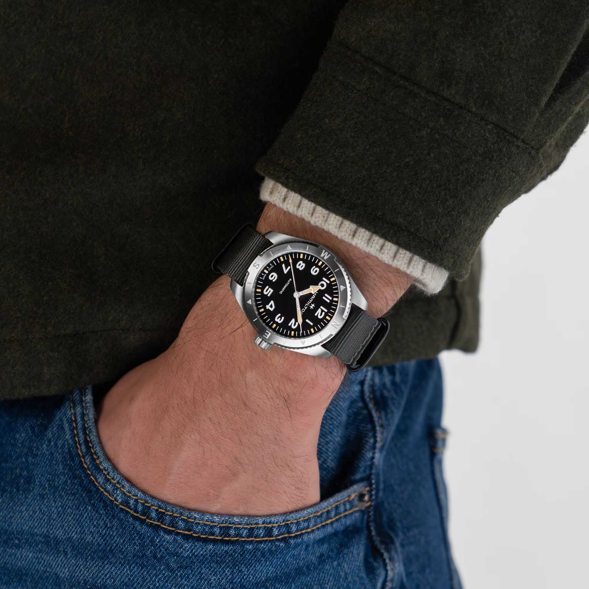 Женские механические швейцарские часы Hamilton Khaki Field Expedition Auto H70225930, механический механизм (автоматический калибр) с высокой точностью. Сапфировое стеклоСапфировое стеклоПрочный и надёжный материал из кристалла сапфира синтетического происхождения, характеризующийся особой твёрдостью и устойчивостью к царапинам и повреждениям. устойчивое к появлению царапин, обладающее высокой прозрачностью. Класс водозащиты: 100 метров, позволит плавать, нырять и заниматься другими водными видами спорта. Корпус часов изготовлен из нержавеющей стали. Текстильный ремешок NATOРемешок NATOРемешок NATO — это прочный, универсальный и сменный часовой ремешок, изначально созданный для военных. Он изготовлен из нейлона или другого прочного материала и имеет уникальную конструкцию, которая позволяет часам оставаться на запястье даже в случае поломки одной из прикрепляющих точек. .